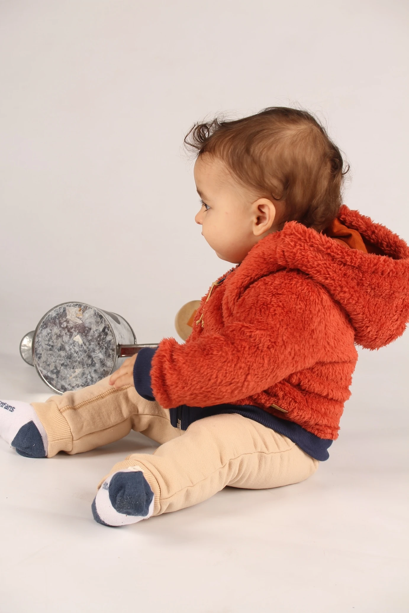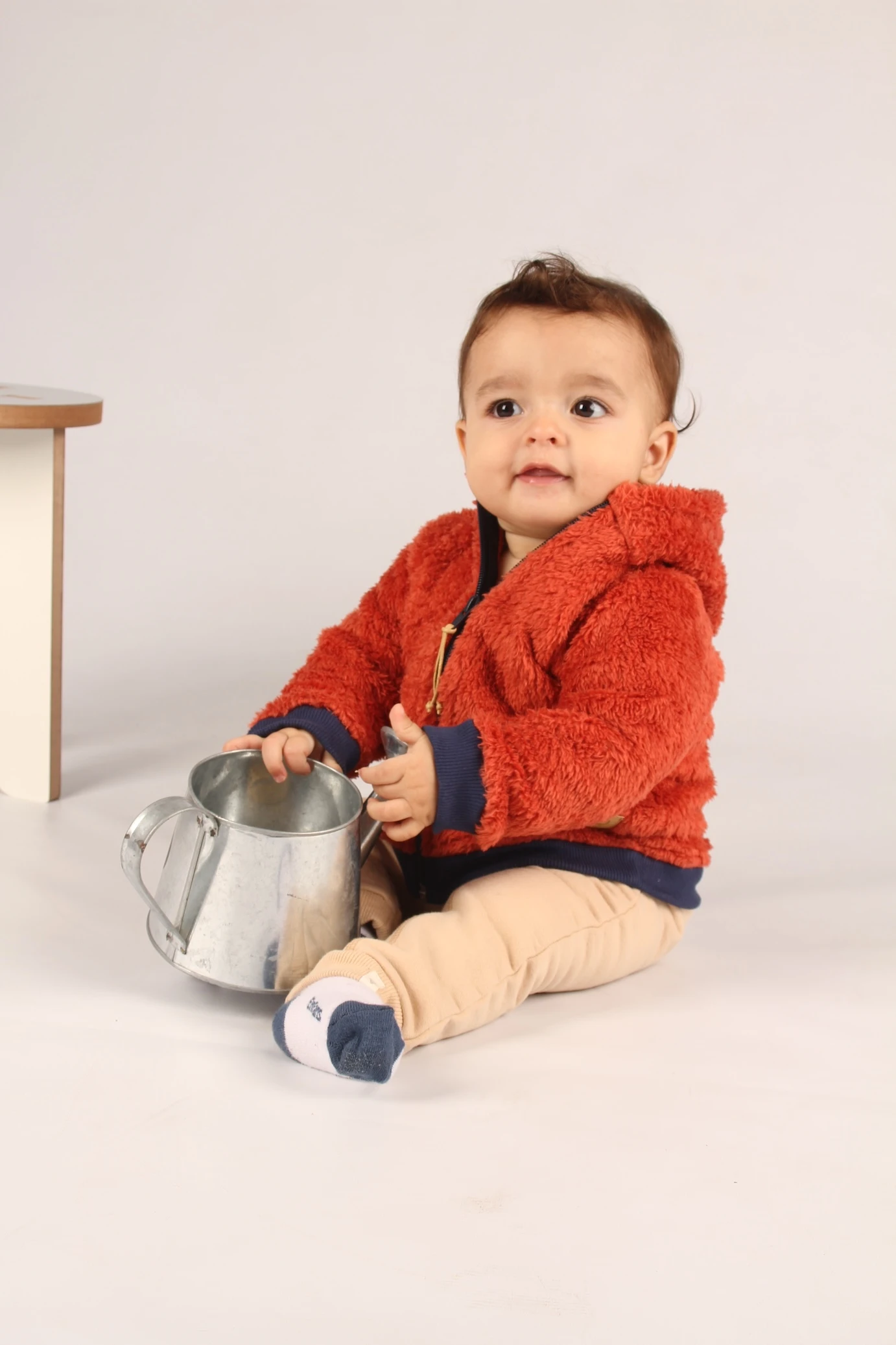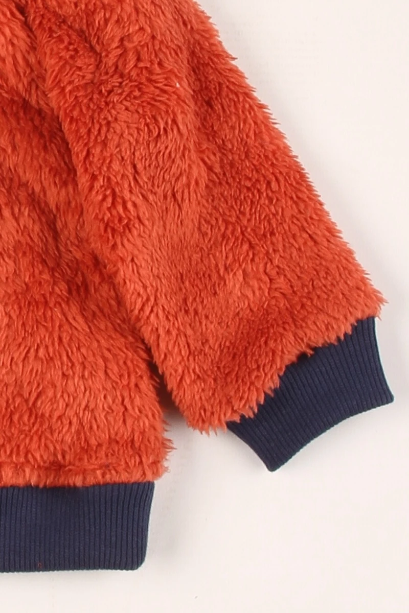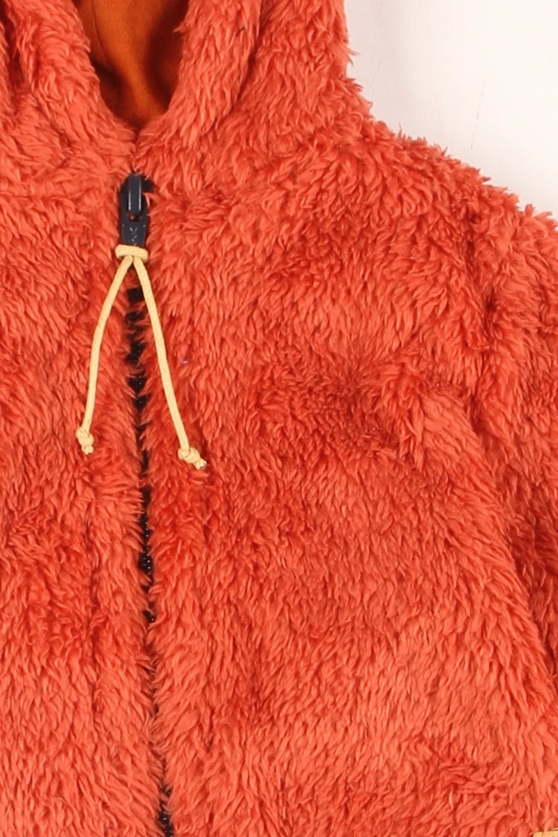 Campera de piel con capucha. Puños y cintura de ribb. Cuenta con un cierre central a tono con tirador artesanal.
