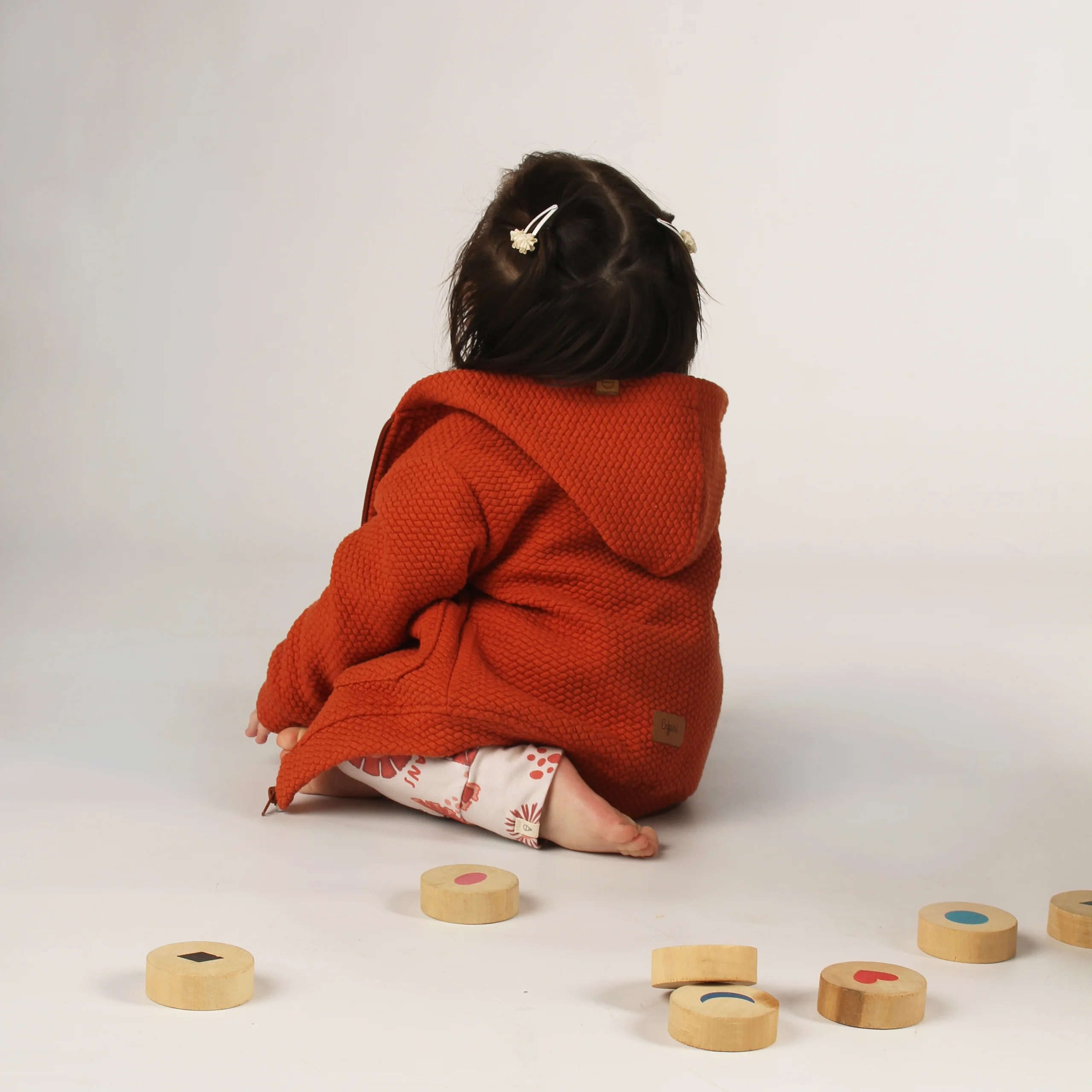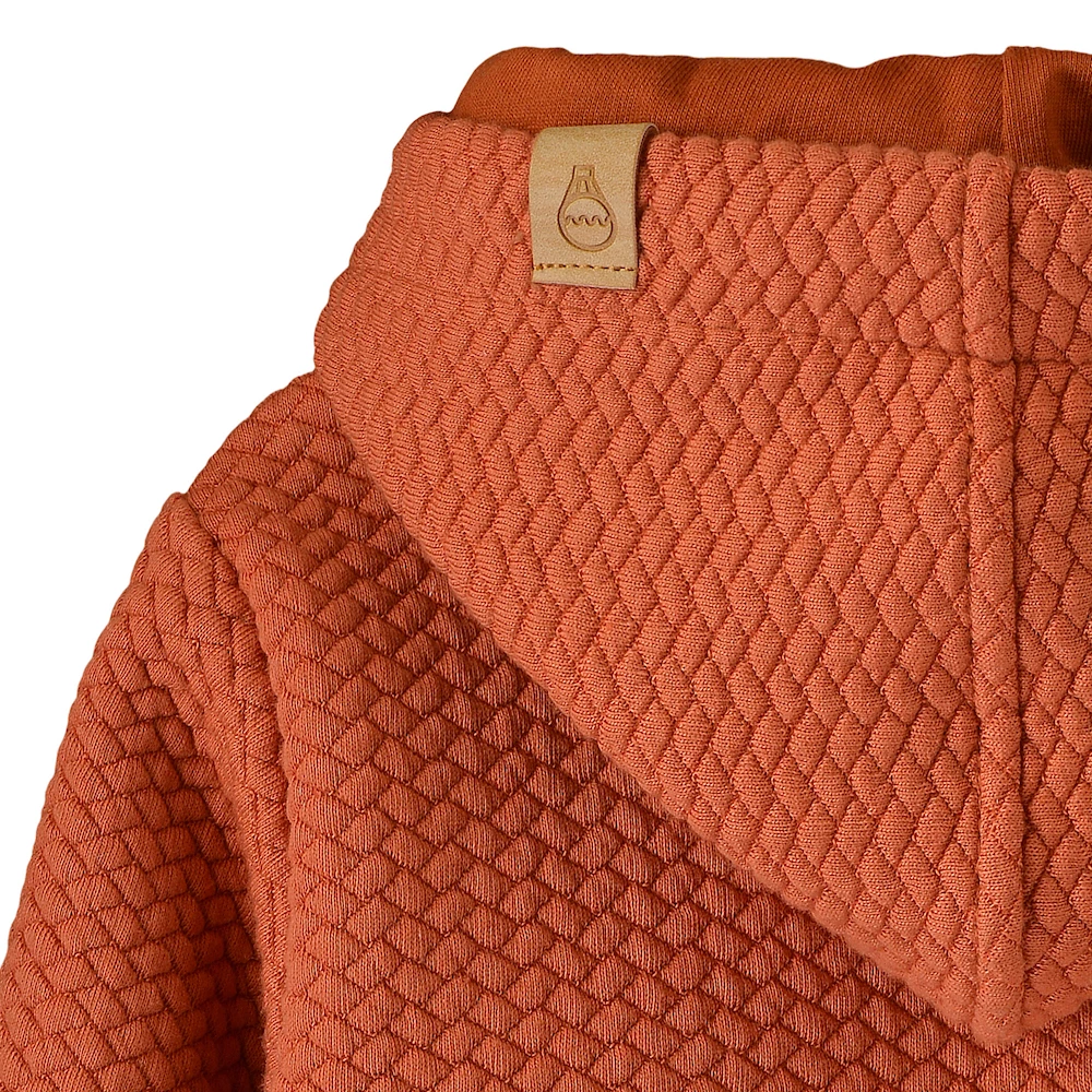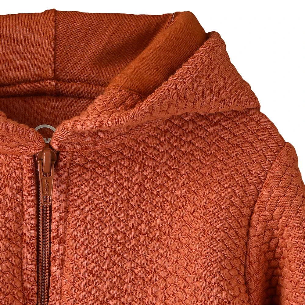CAMPERA DE MATELASSE CON CIERRE Y CAPUCHA. INTERIOR FORRADO CON JERSEY DE ALGODON.
