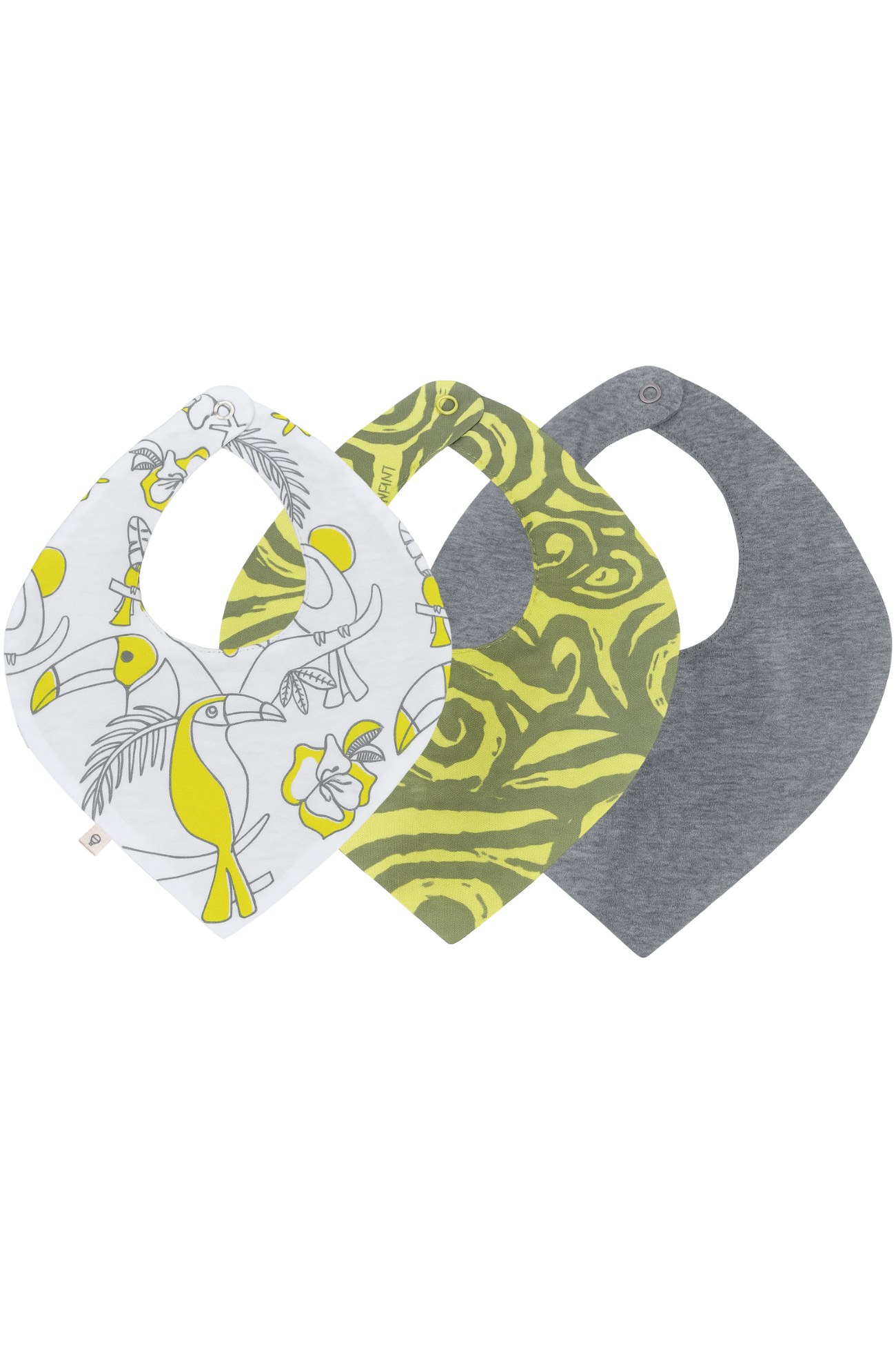 3 BABEROS TIPO BANDANA FORRADOS EN JERSEY DE ALGODON. ESTAMPA FULL PRINT EXCLUSIVA.