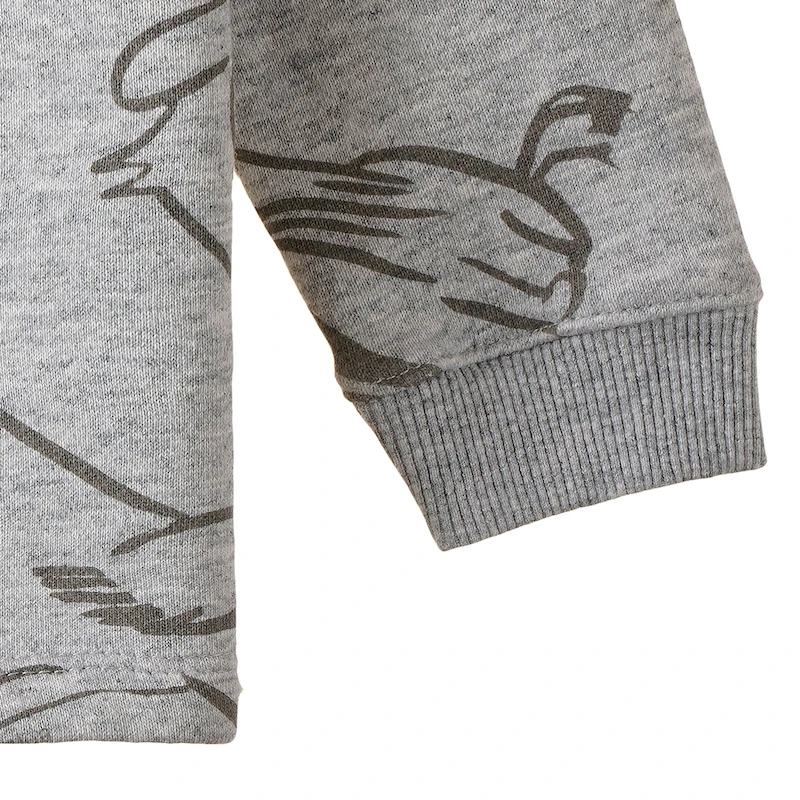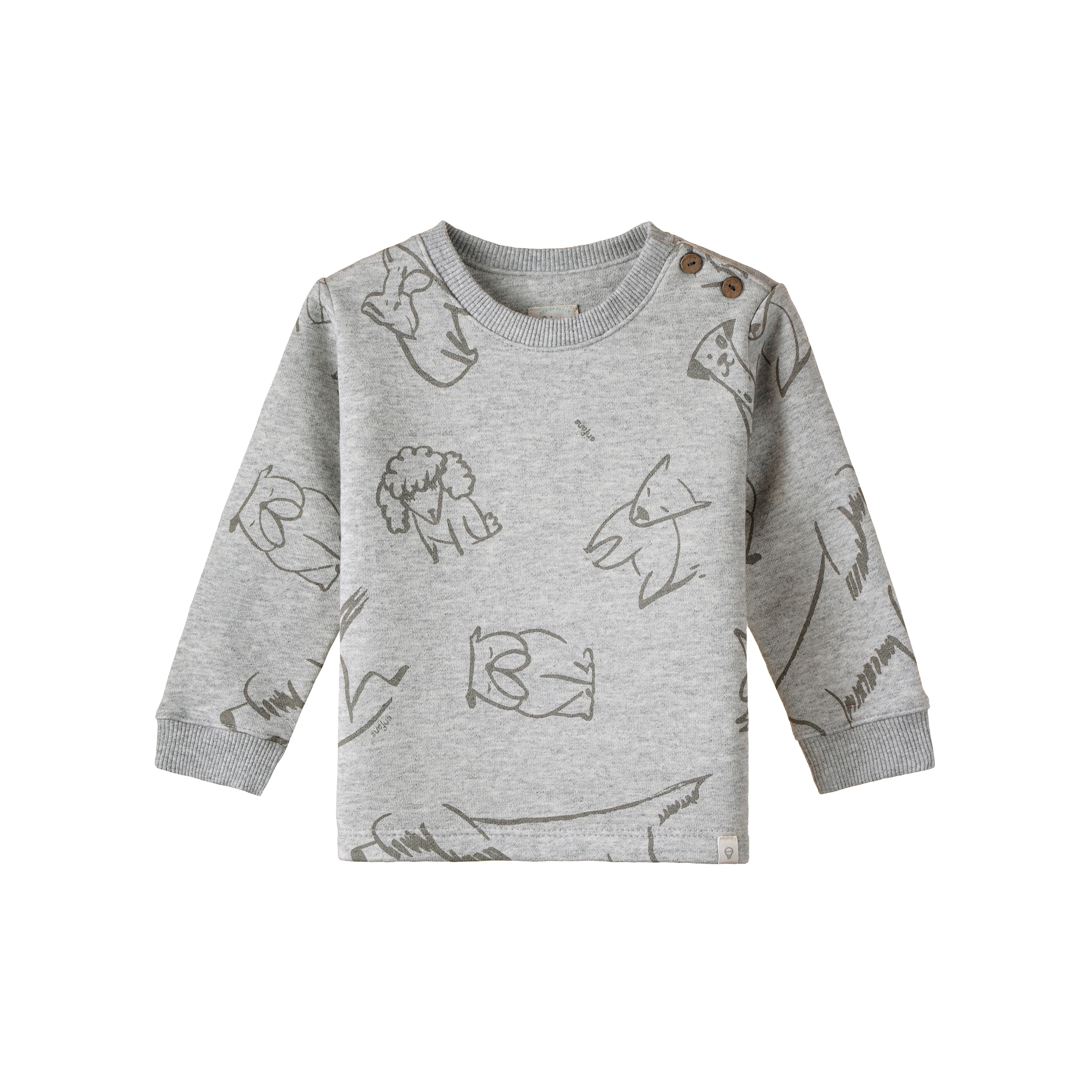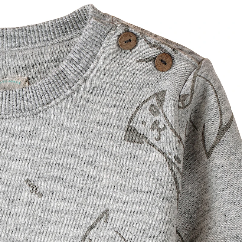 BUZO DE FRISA CORTE CLASICO CON CARTERA EN HOMBRO Y BOTONES. ESCOTE REDONDO. ESTAMPADO FULL PRINT