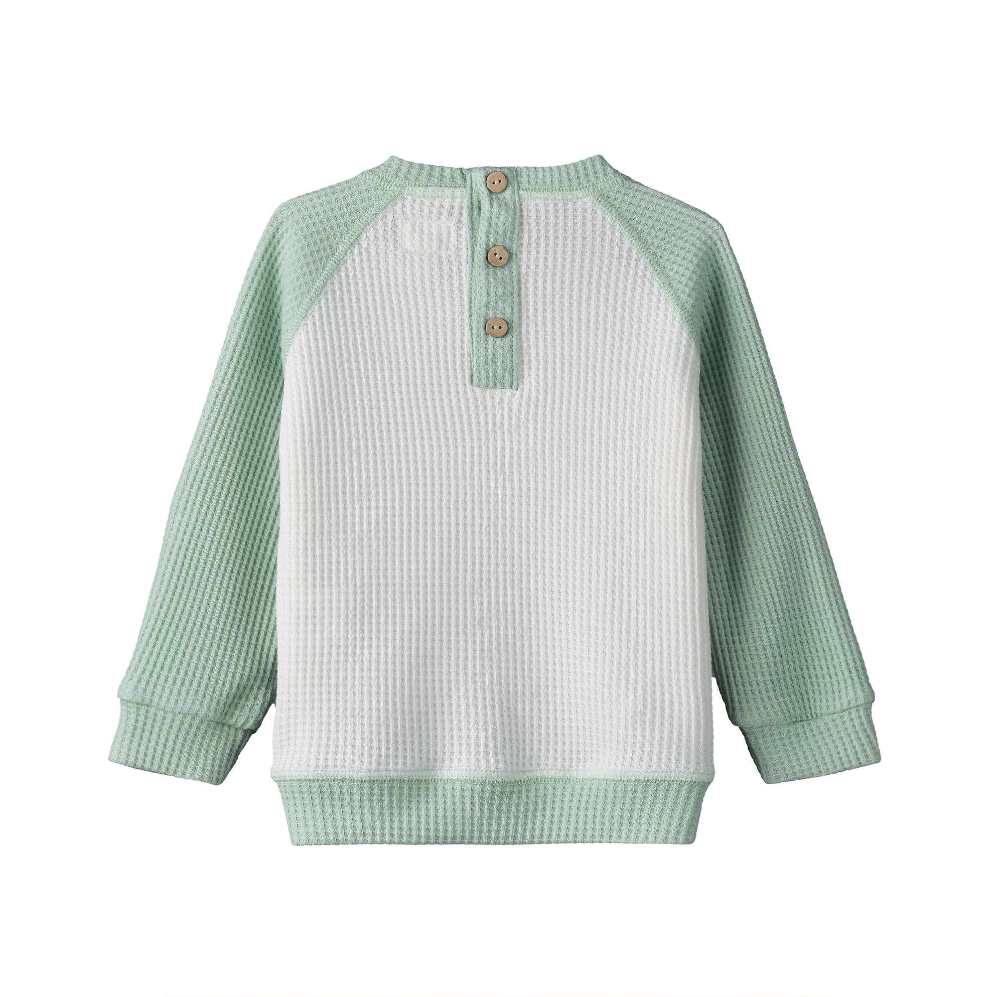 BUZO TELA PANAL DE ALGODON, CARTERA EN ESPALDA CON BOTONES DE COCO, AMPLIO, MANGA RANGLAN A CONTARTONO