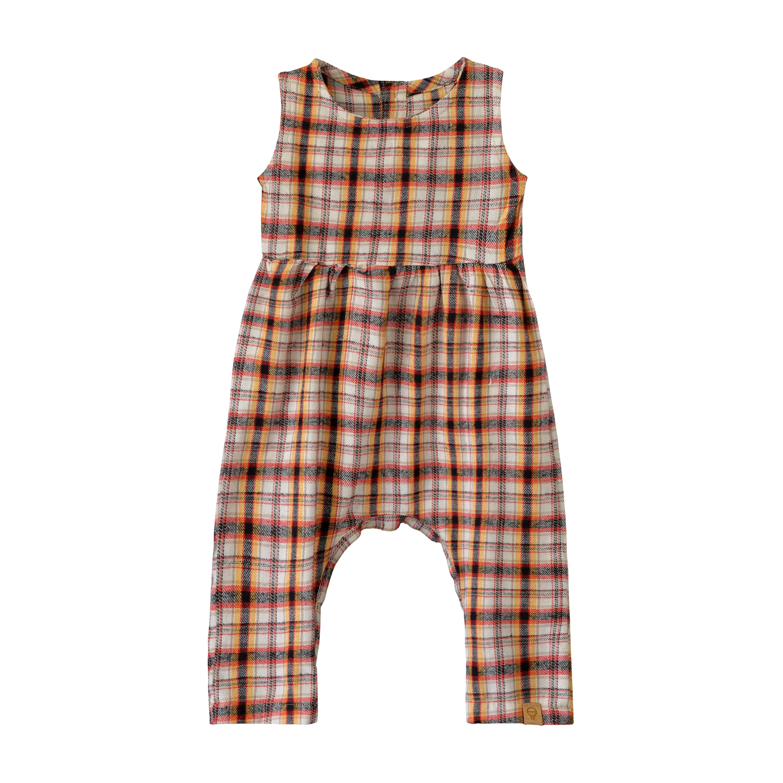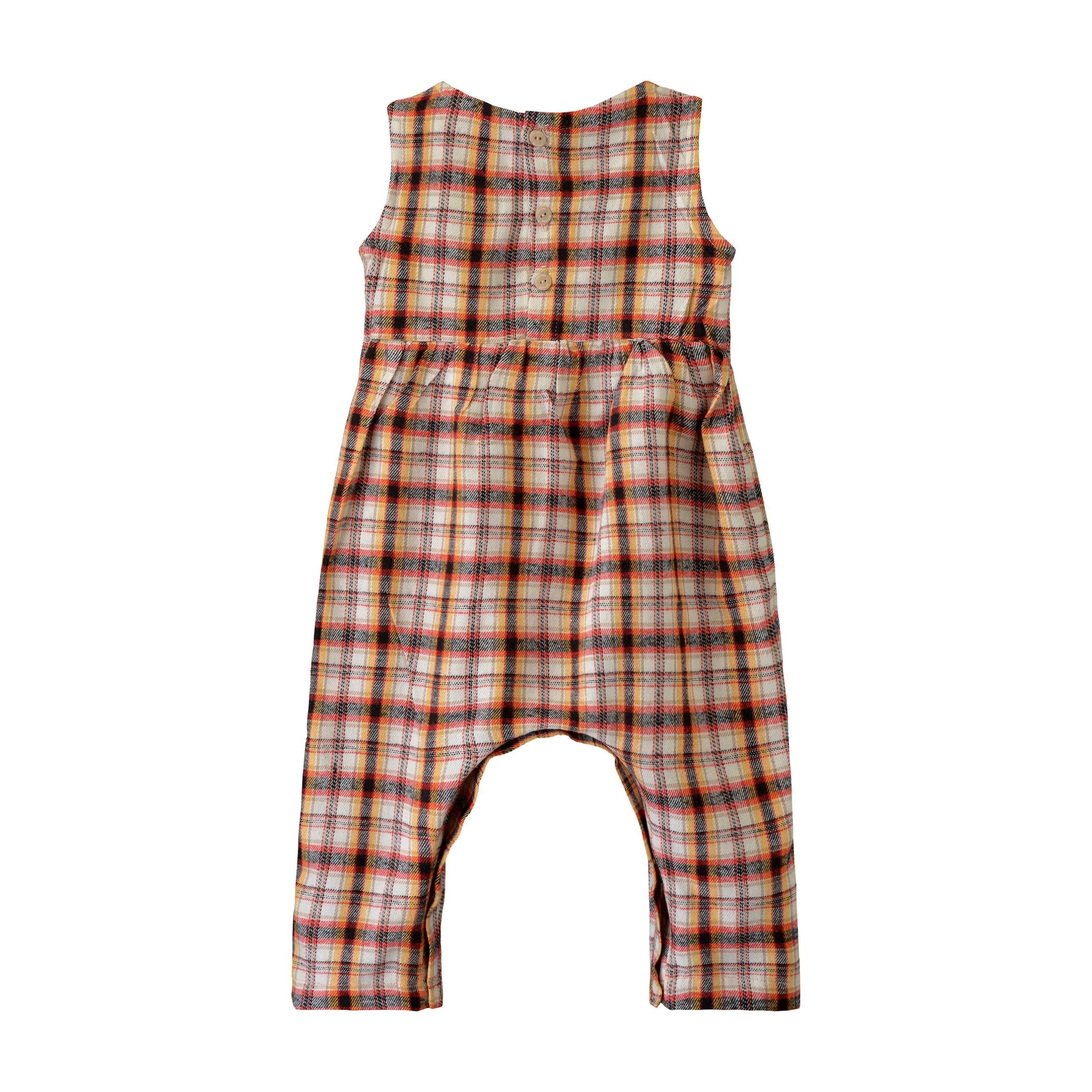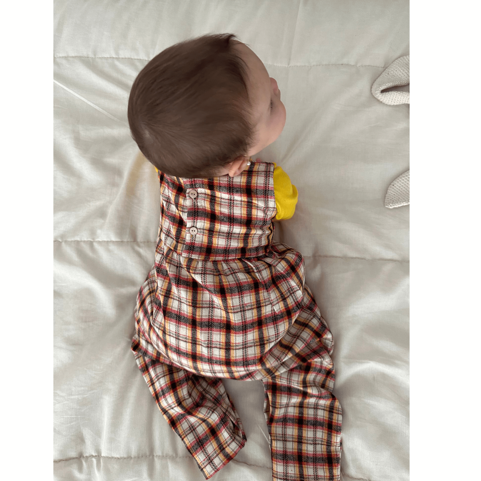 ENTERO SIN MANGAS CON CARTERA Y BOTONES EN LA ESPALDA. PANTALON CON FRUNCES Y PAÑALERO CON BROCHES METALICOS A PRESION.