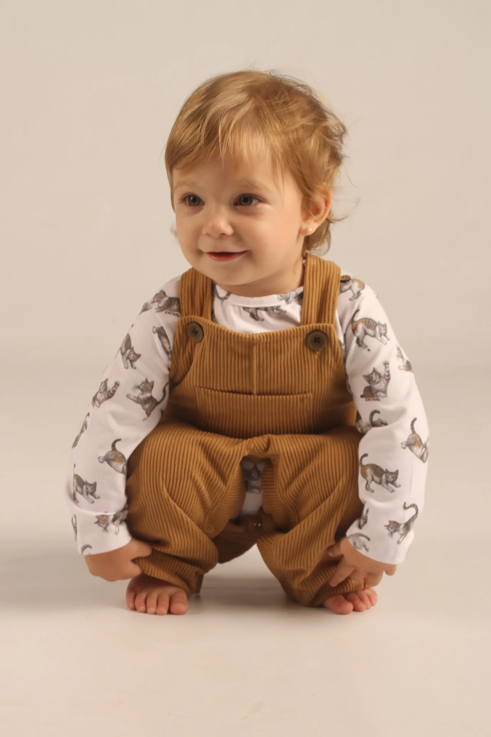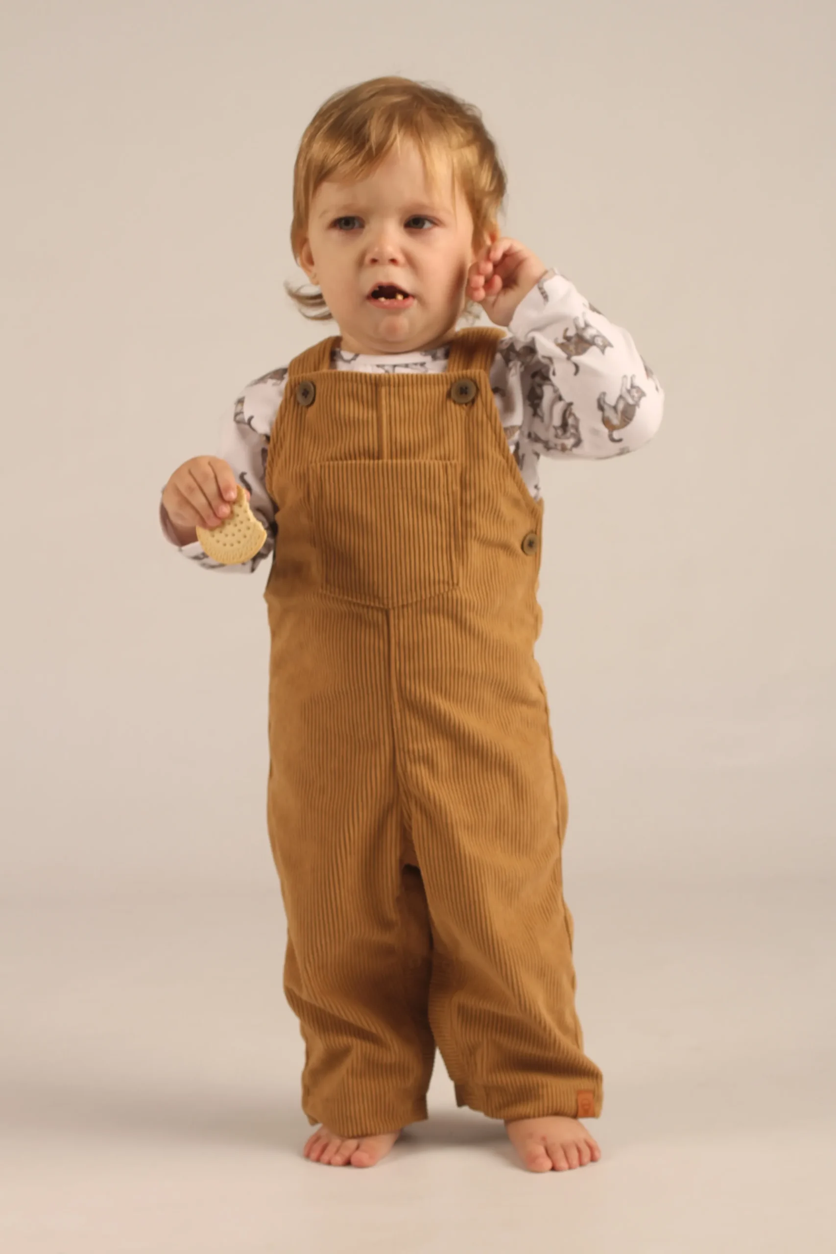 El entero Benny está confeccionado en suave corderoy, con un bolsillo plaqué central delantero que le da un toque bonito. Sus breteles y laterales ajustables con botoncitos de coco y los broches a tono en la entrepierna aseguran comodidad y facilidad de uso.