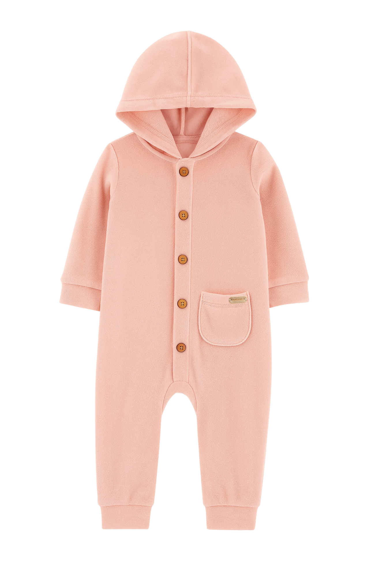 El entero Félix está confeccionado en plush bifaz, ofreciendo suavidad y calidez. Su capucha y cartera larga con botoncitos de coco y bolsillito plaqué delantero le dan un toque práctico y encantador.