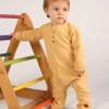 Entero monocromático confeccionado en algodón rústico. Su cartera delantera con botoncitos de coc}o facilita vestir y desvestir al bebé de manera rápida y sencilla. Tiene cuello redondo y prácticos broches en la entrepierna que permiten cambiar pañales con facilidad.