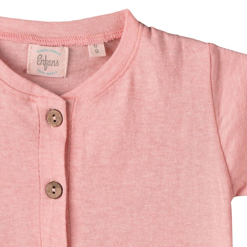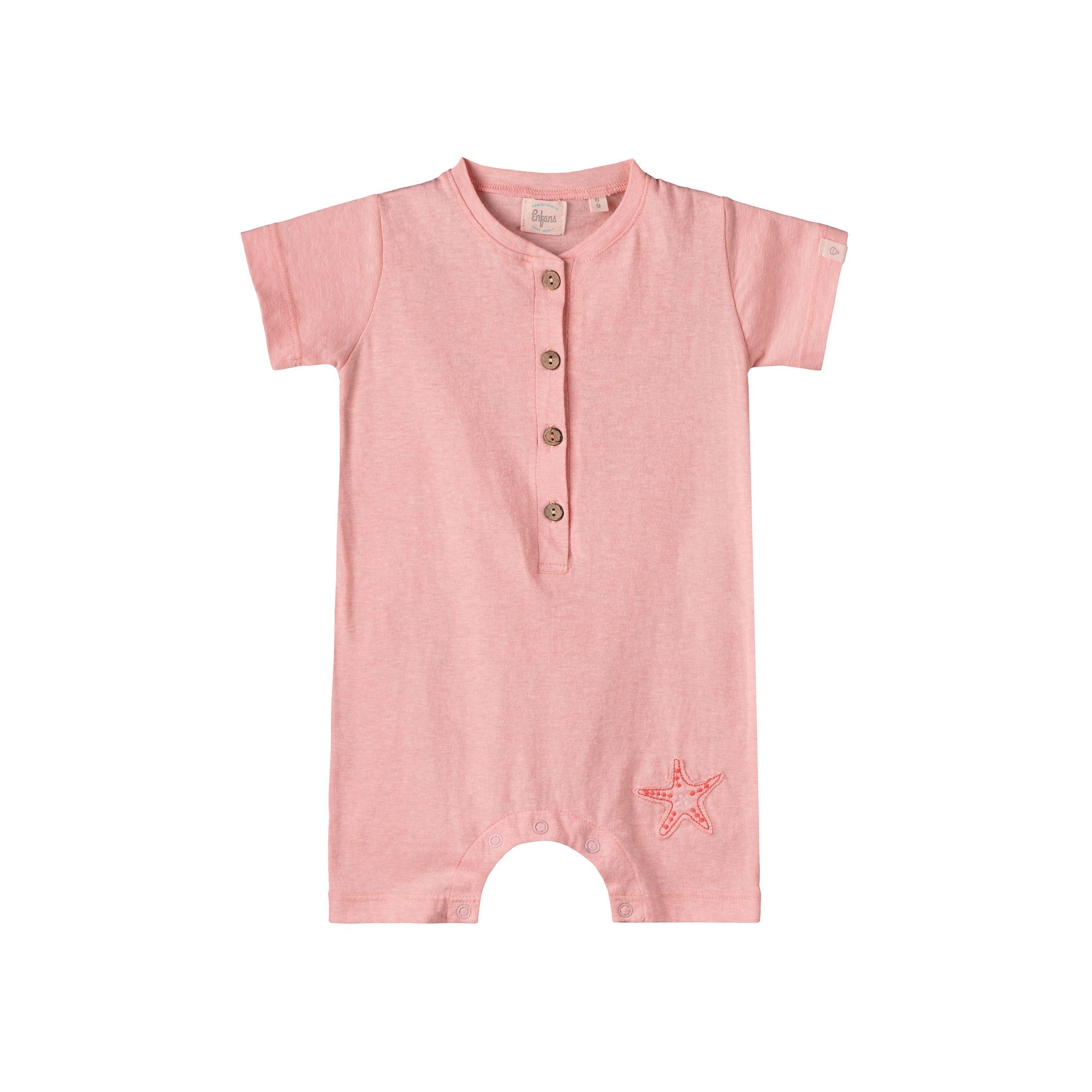 MONO RECTO MANGAS CORTAS CUELLO REDONDO CON CARTERA Y BOTONES. ESTAMPA EN ESPALDA Y APLIQUE EN DELANTERO