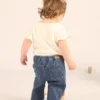 El pantalón Camaleón en denim elastizado es práctico y cómodo. Tiene bolsillitos traseros tradicionales y bolsillitos redondos simulados en el delantero. El ajuste con cordón y terminal de metal asegura el ajuste y su composición de 98% algodón y 2% elastano ofrece flexibilidad.