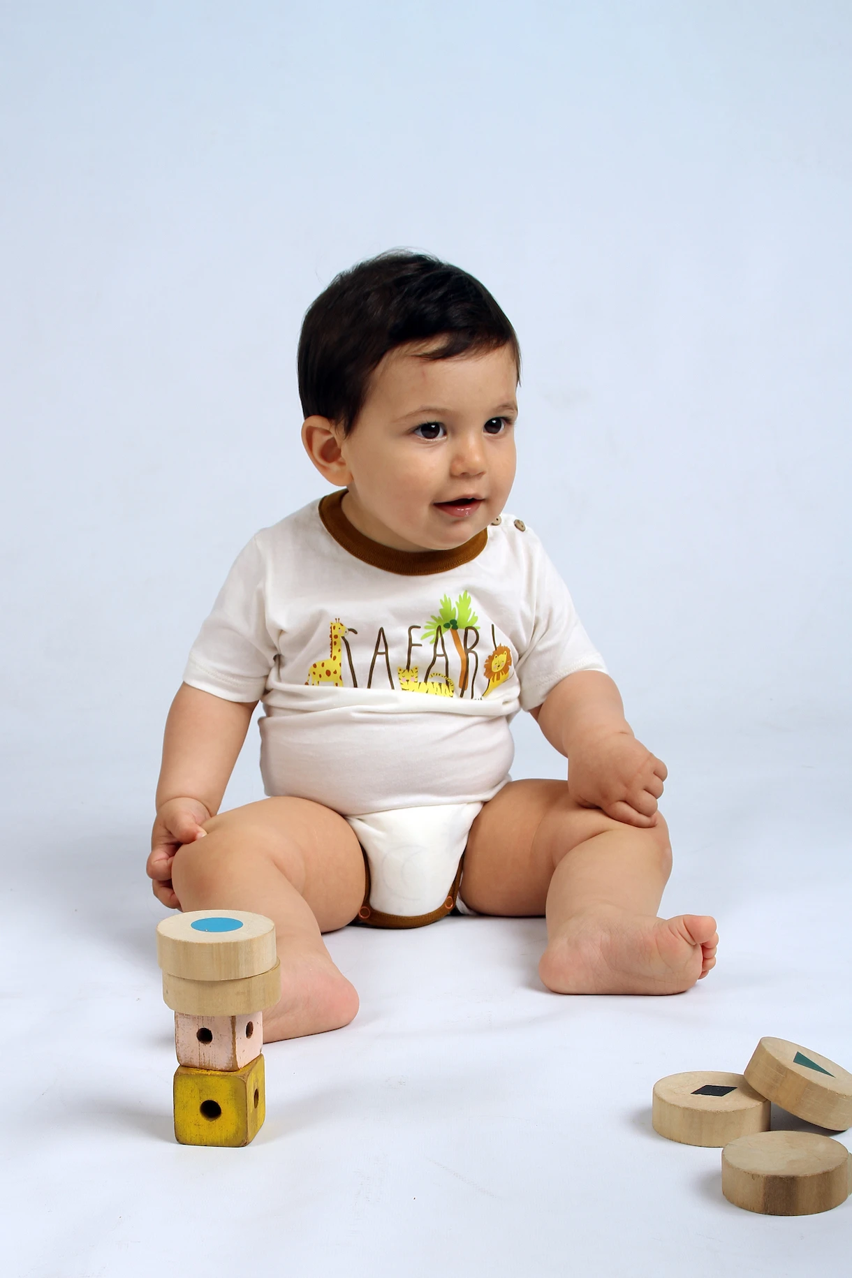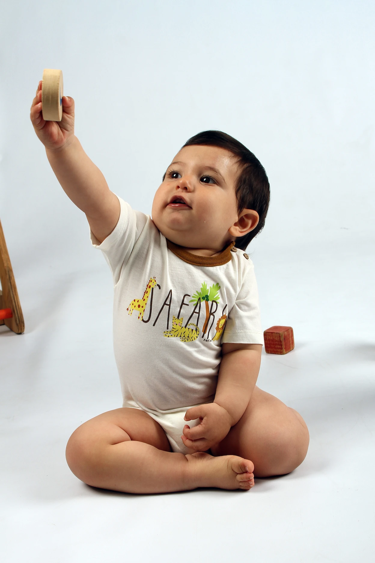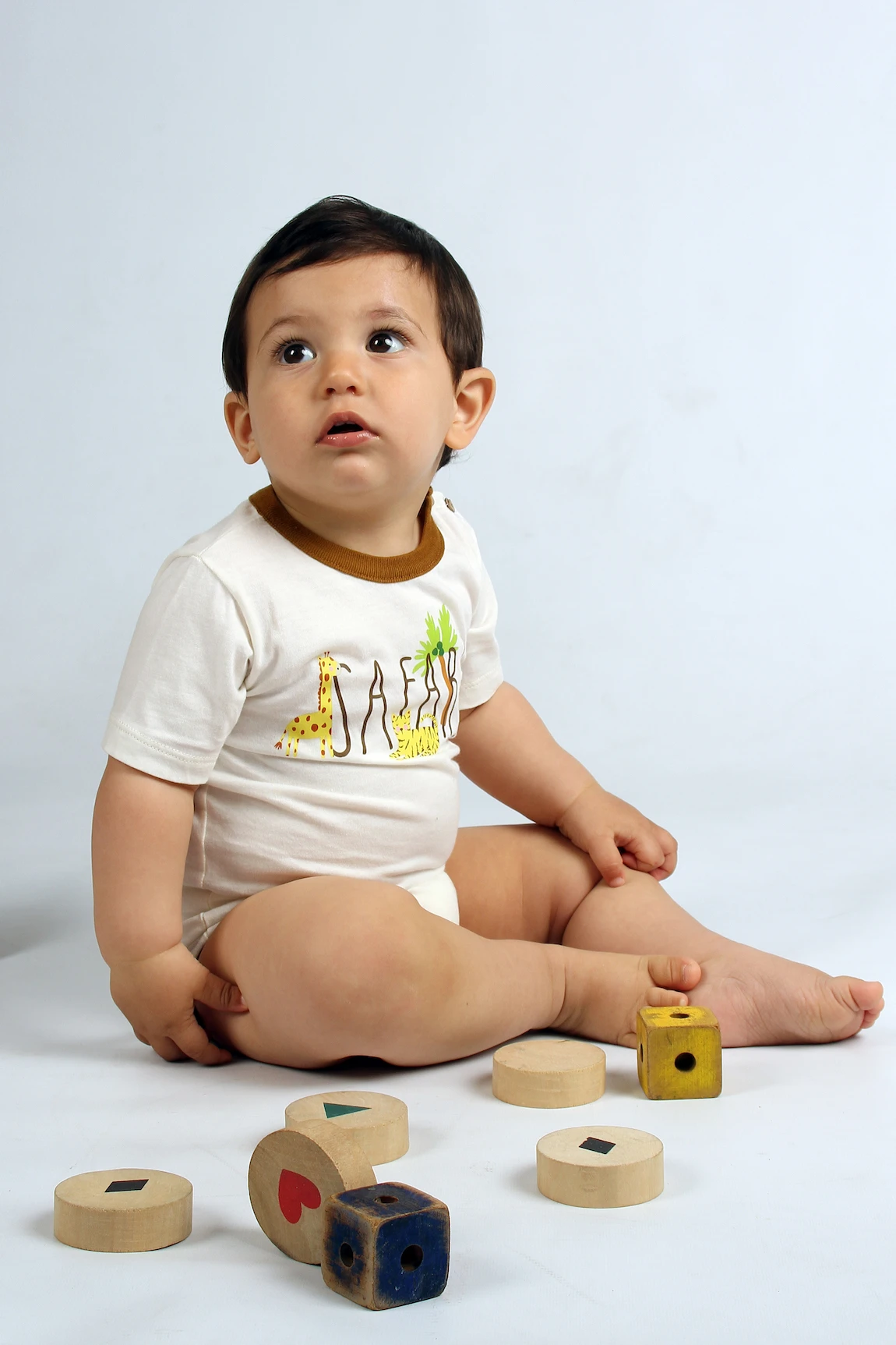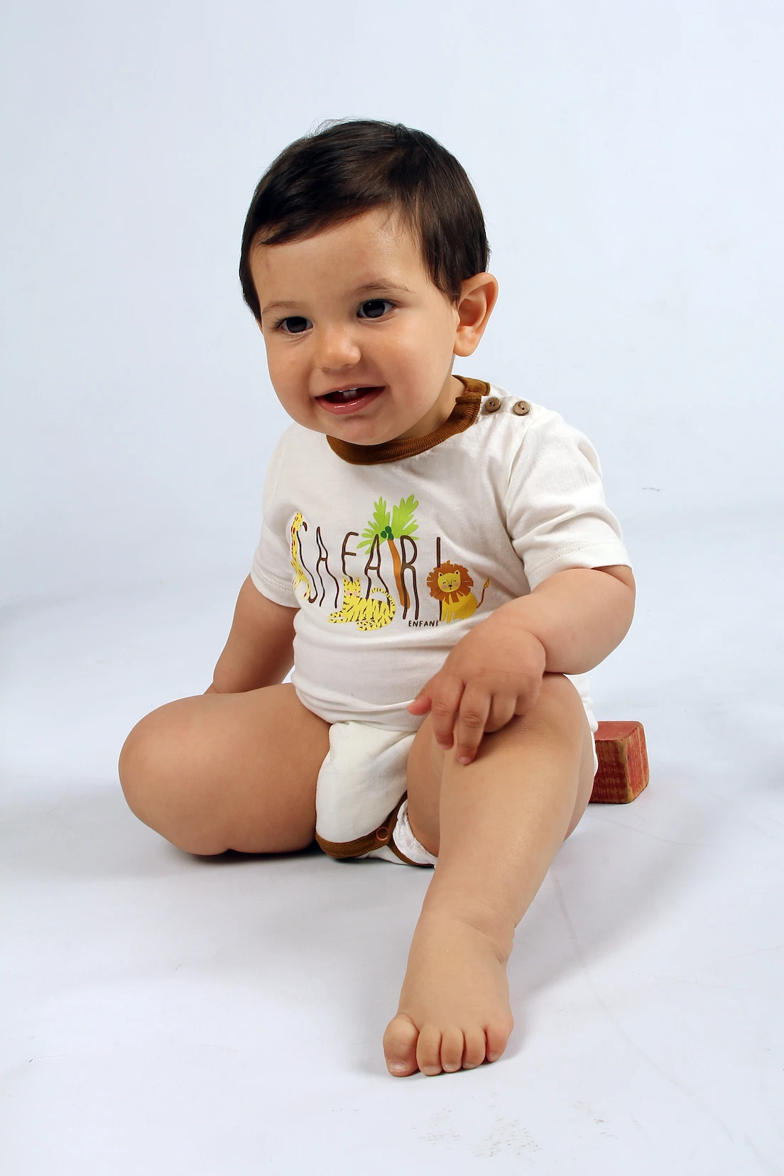 Este body de algodón es una prenda versátil y cómoda. Tiene detalles como el cuello redondo de ribb, cartera lateral con botones de coco y estampa central exclusiva. Los broches en la entrepierna facilitan su uso y cambio de pañal.