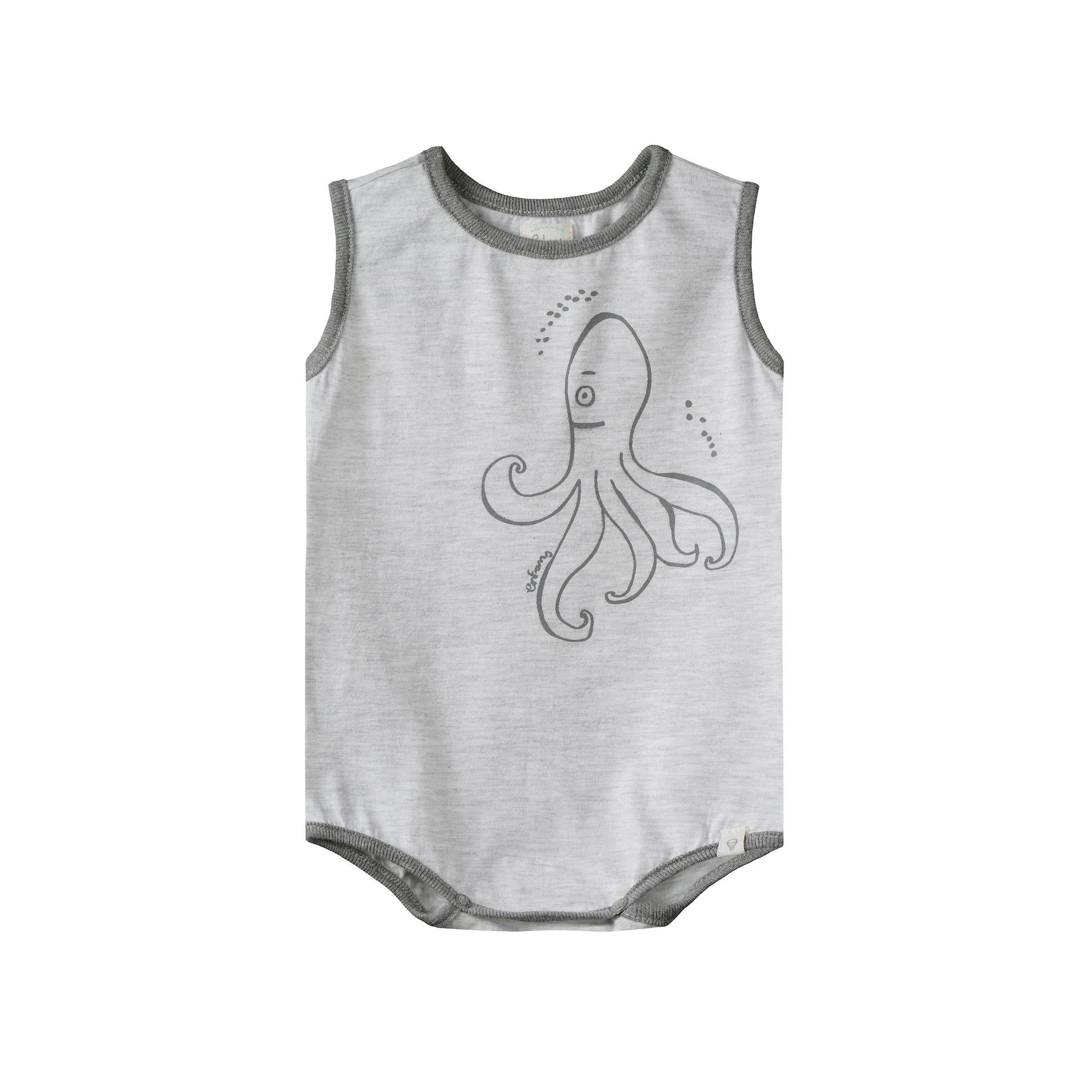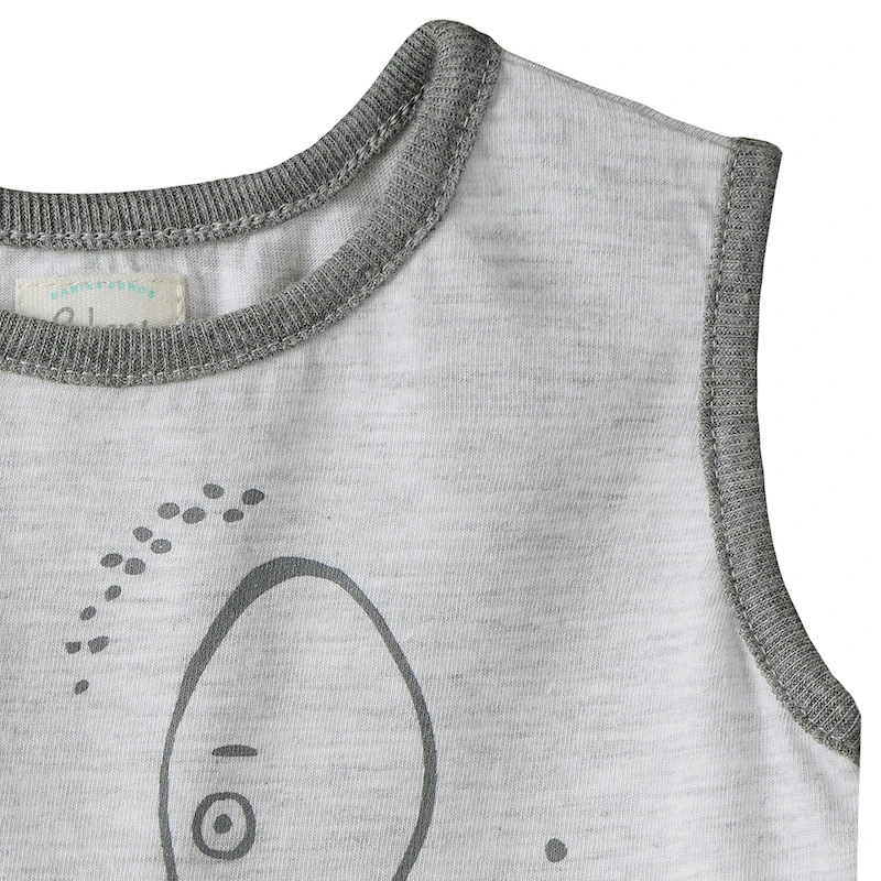 BODY SIN MANGAS. CIERRE PAÑALERO CON BROCHES A PRESION. ESTAMPA CENTRAL Y VICOS A CONTRATONO. JERSEY SUPER LIVIANO Y FRESCO.