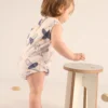 El body Erik, hecho en jersey 24/1 de algodón 100%, se destaca por su suavidad y facilidad de uso. La cartera en el hombro con botoncitos de coco y los broches en la entrepierna hacen que cambiar pañales sea rápido y cómodo. Cuello y mangas entubados en ribb aseguran un ajuste delicado y confortable.