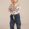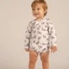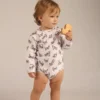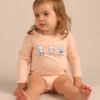 Body de mangas largas con estampa full exclusiva de la temporada. Su cuello entubado y carterita lateral con botoncitos de coco aportan detalle y funcionalidad. Confeccionado en algodón elastizado, ofrece comodidad y flexibilidad. Los broches pañaleros a tono permiten cambiar al bebé fácilmente.