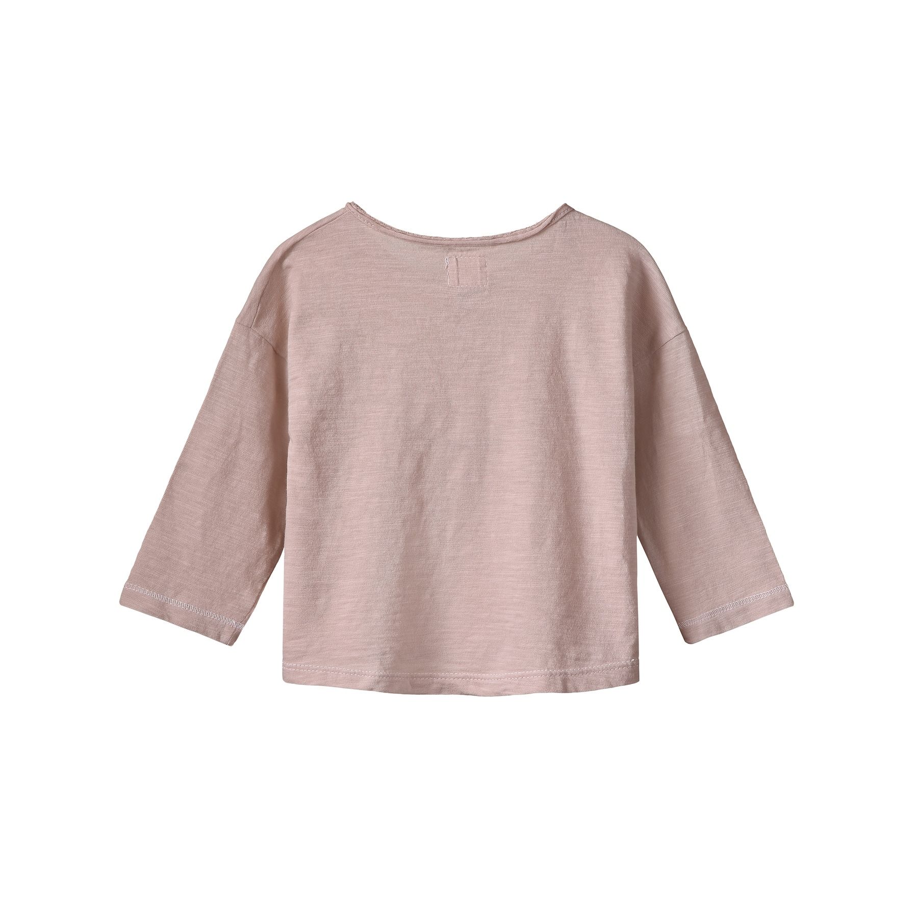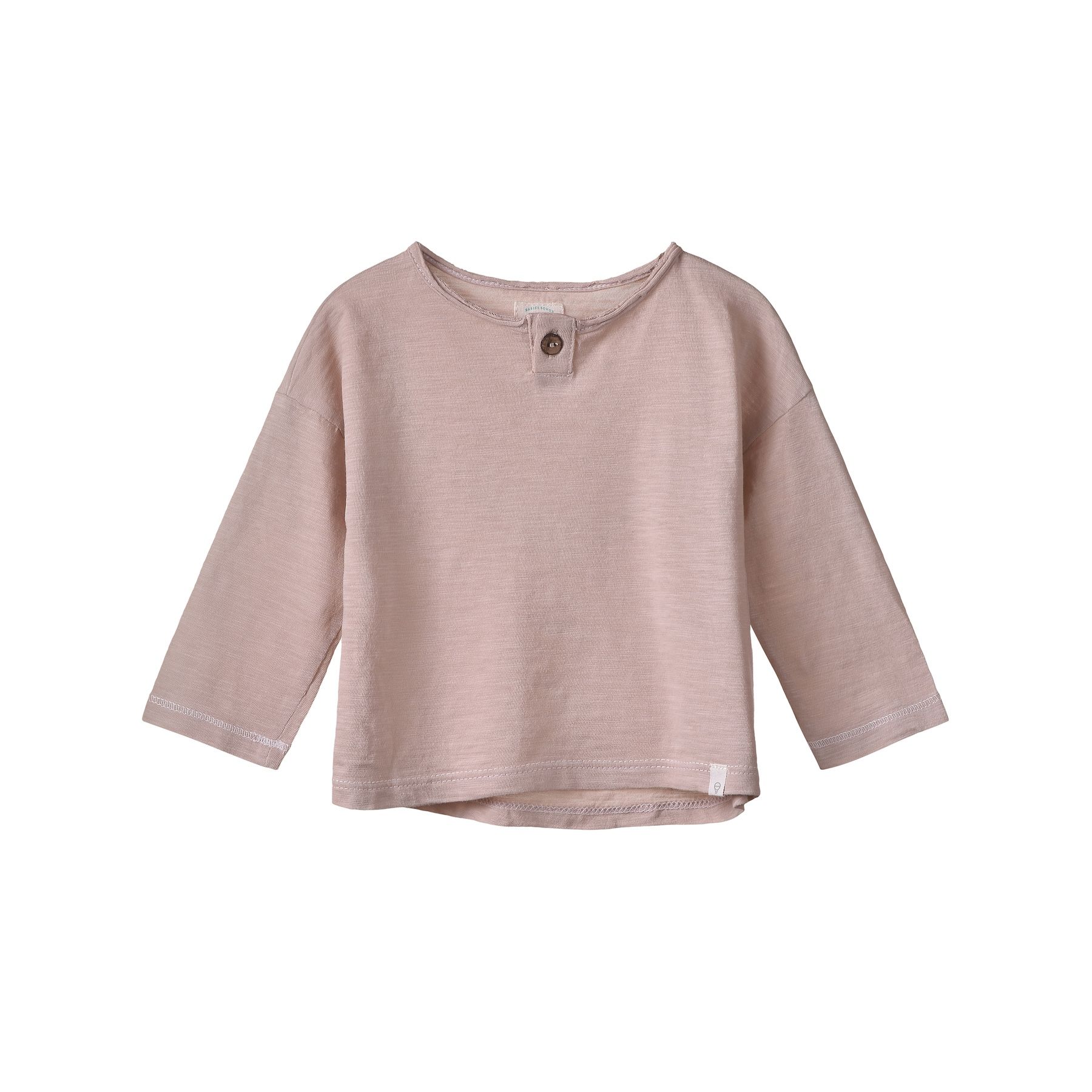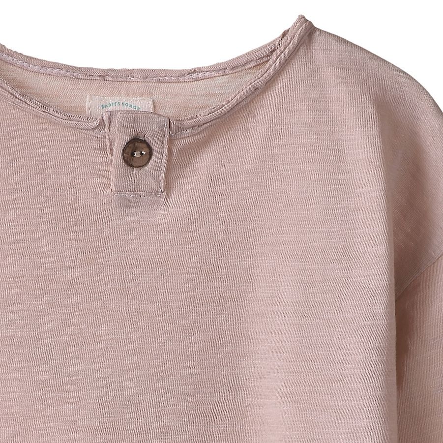 REMERA AMPLIA MANGAS LARGAS. ESCOTE REDONDO CON CARTERA Y BOTON. LATERALES CON COSTURA BORDADA A TONO. FLAME 100 % ALGODON PIMA PERUANO.