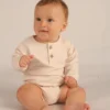 Este body de Morley,con mangas largas y una delicada cartera delantera con botoncitos de coco, es perfecto para tu bebé. Los broches en la entrepierna, a tono, lo hacen cómodo y práctico.