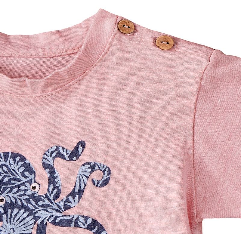 REMERA BASICA MANGAS CORTAS. CARTERA EN HOMBRO CON BOTONES Y ESTAMPA CENTRAL.