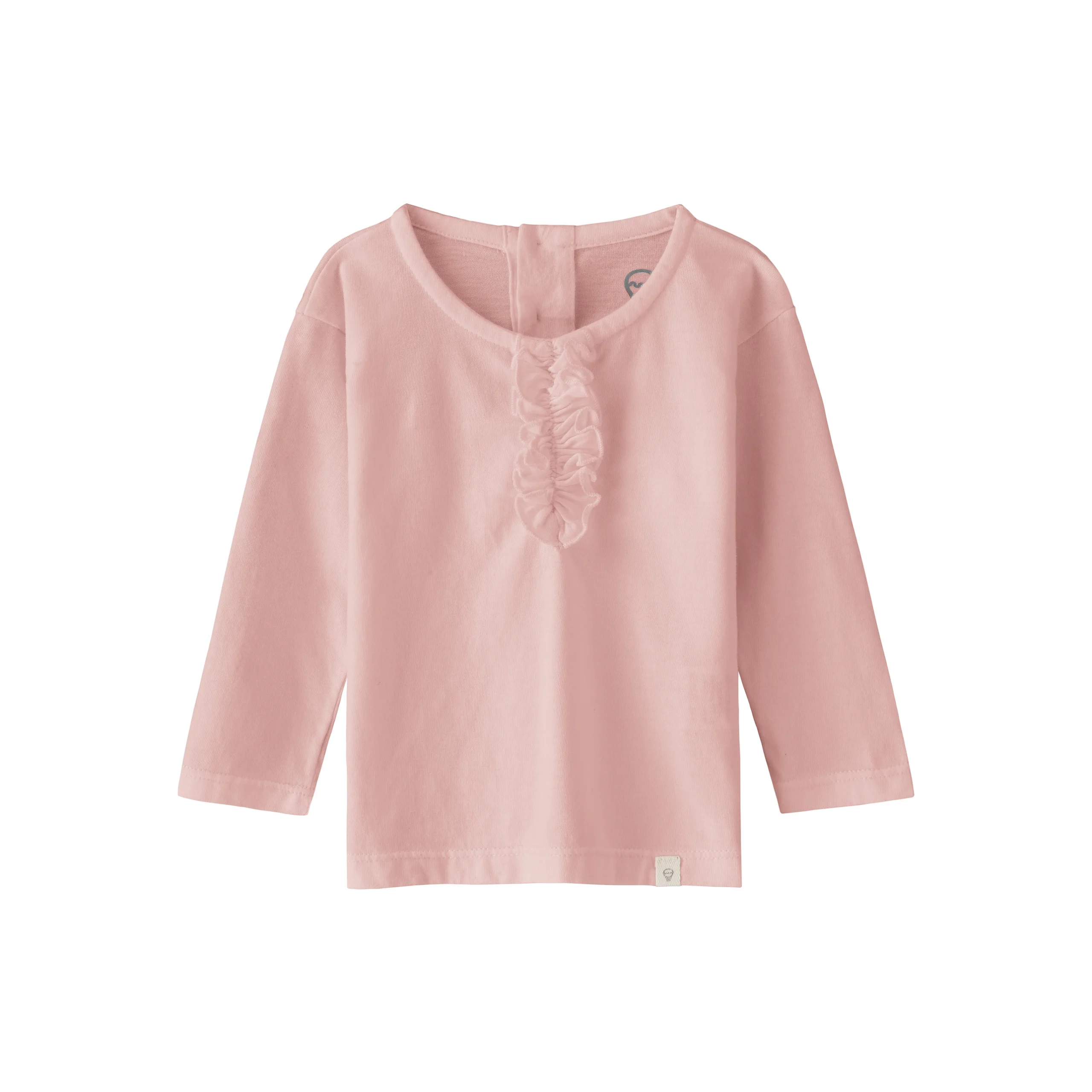 REMERA MANGAS LARGAS CON CARTERA Y BOTONES EN ESCOTE TRASERO. DELANTERO CON JABOT. JERSEY DE ALGODON 100%