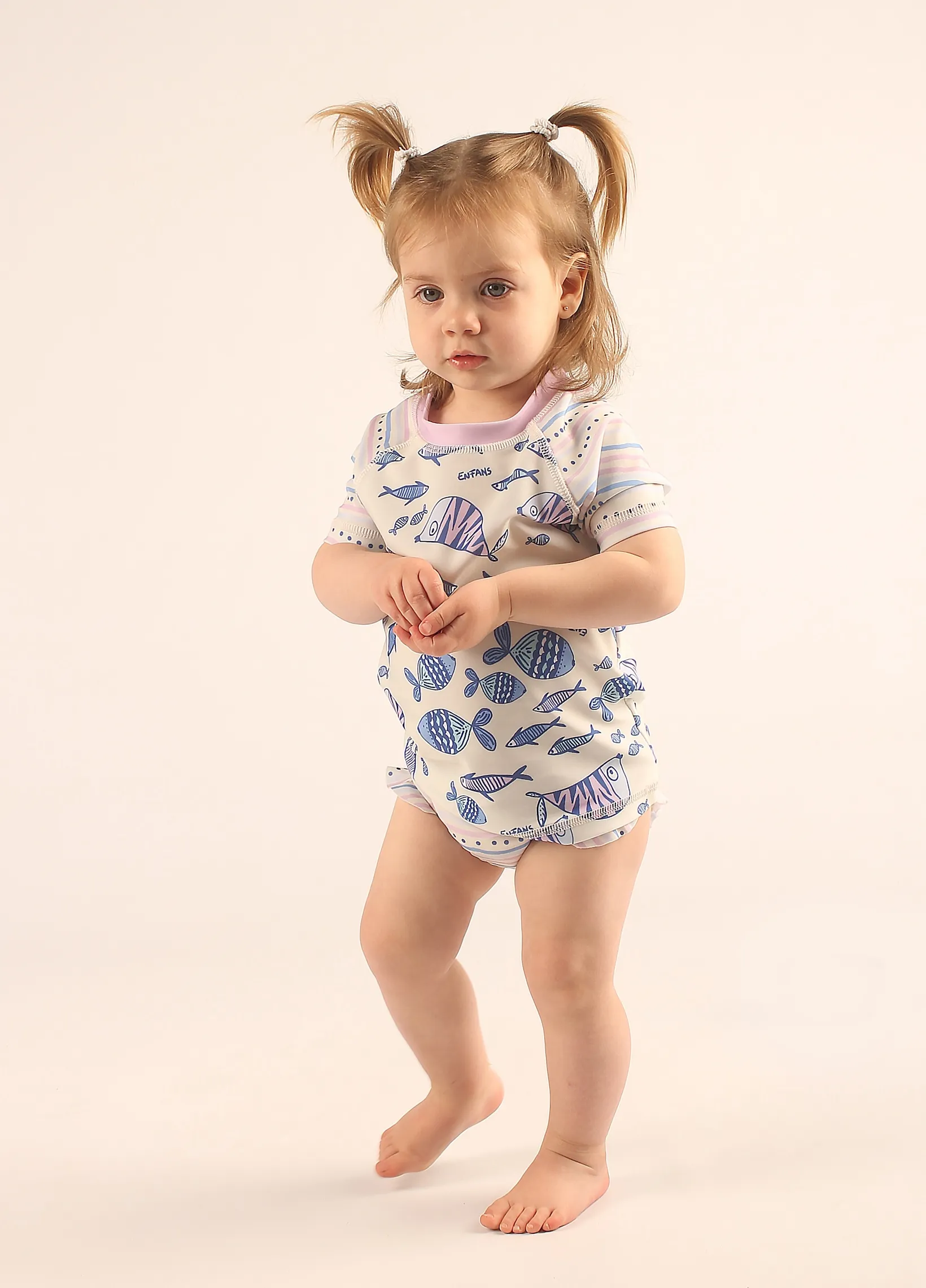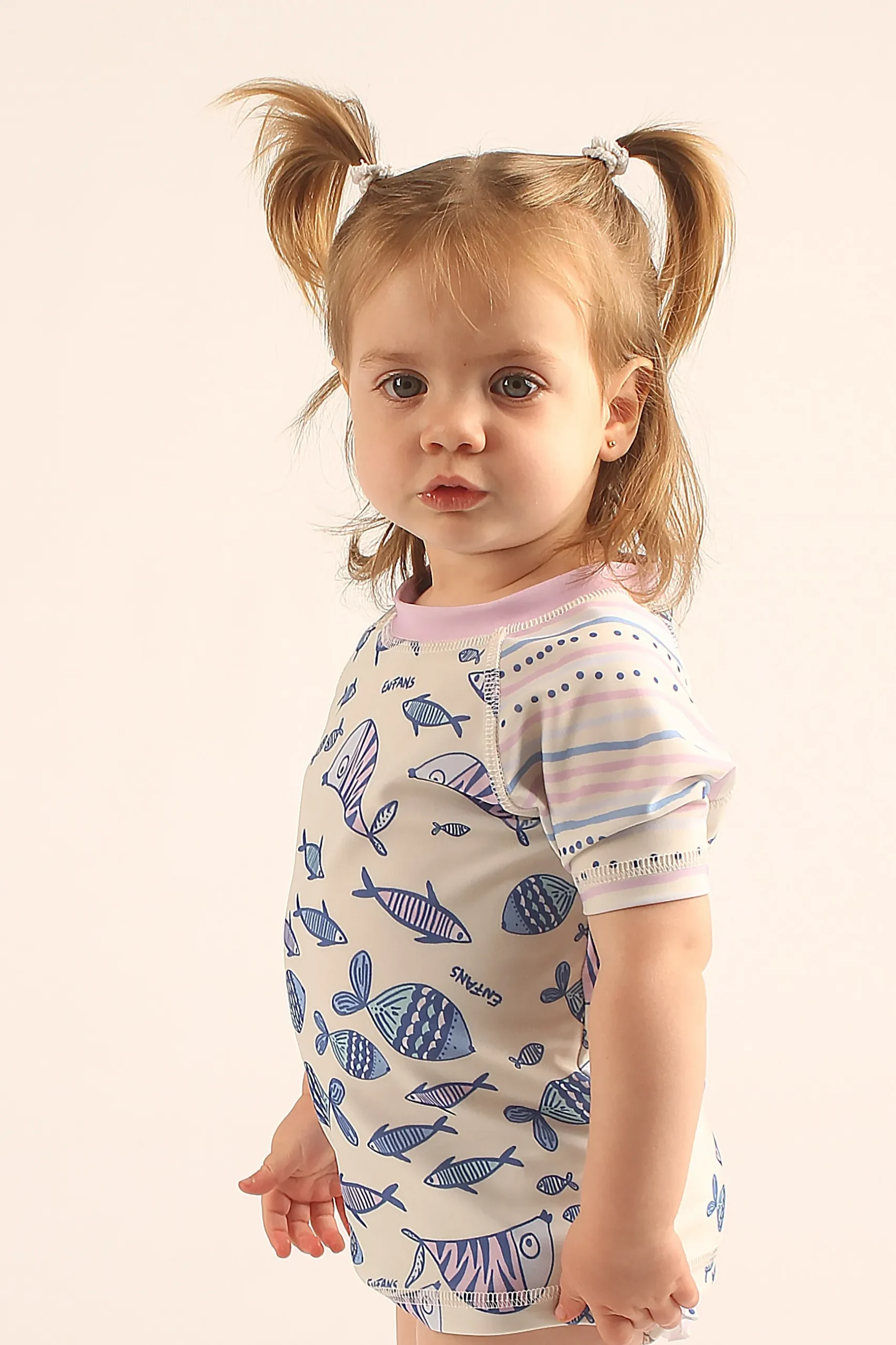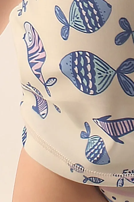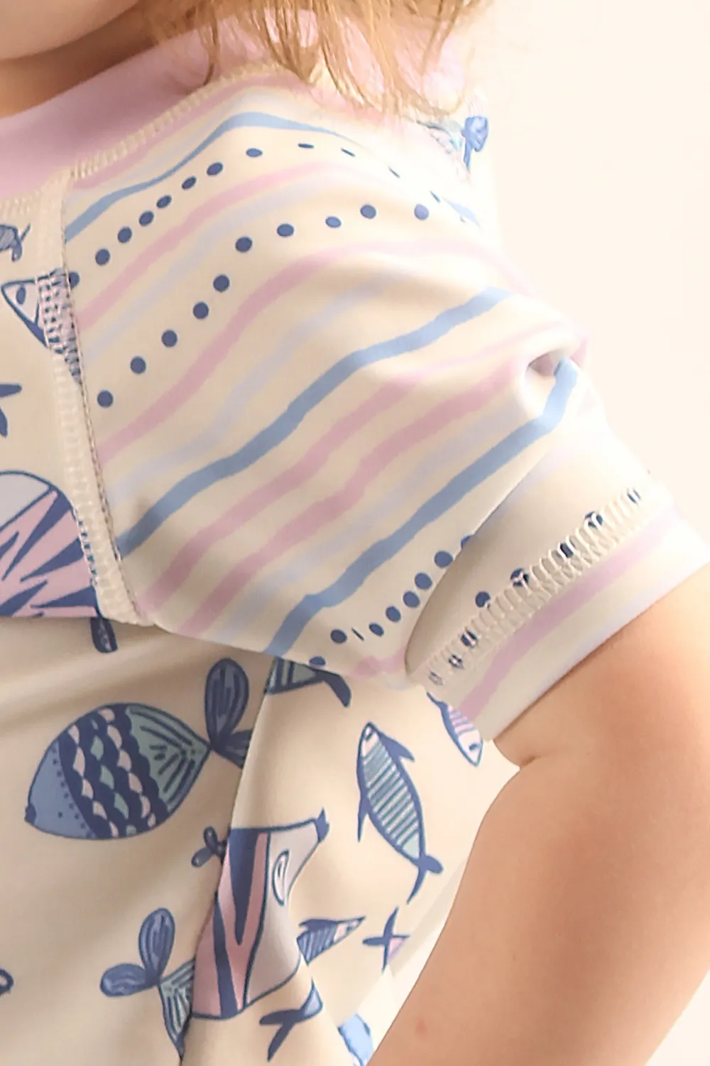Remera de bao confeccionada en tricot con elastano estampado. Esta prenda brinda proteccin UV+50, bloqueando los rayos ultravioleta y cuidando la piel. Las mangas cortas aseguran comodidad y libertad de movimiento.