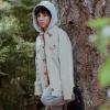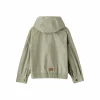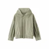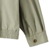 CAMPERA DE GABARDINA FORRADA CON JERSEY DE ALGODON. MANGAS AMPLIAS CON TABLAS. BROCHES DE METAL. CINTURA ELASTIZADA.