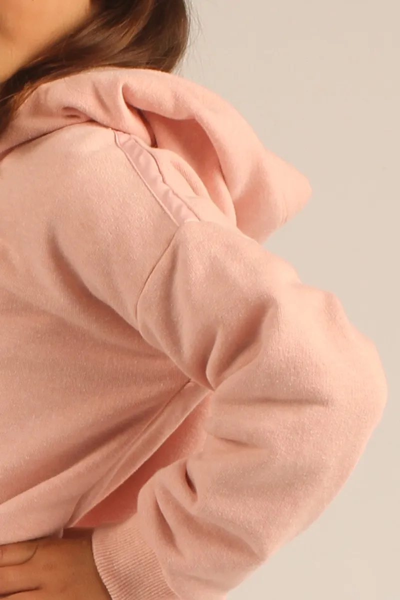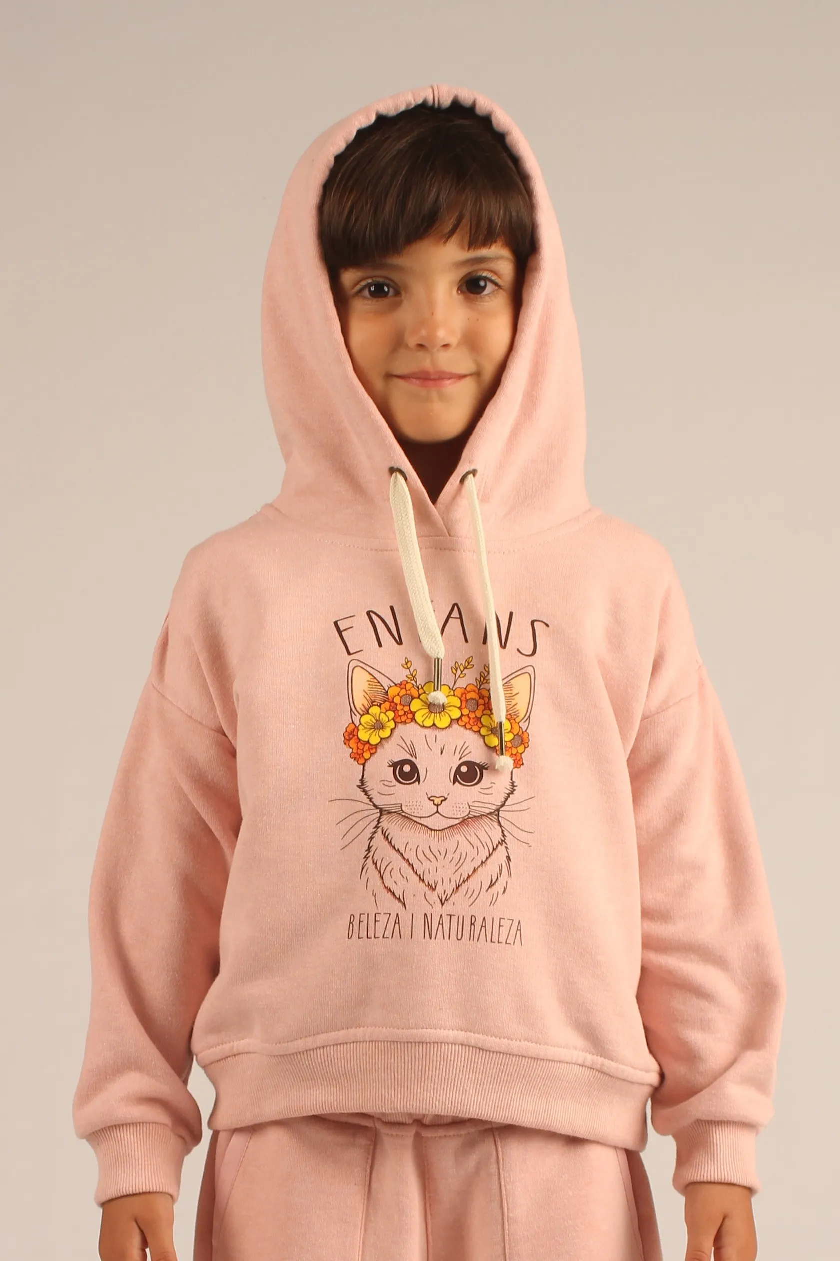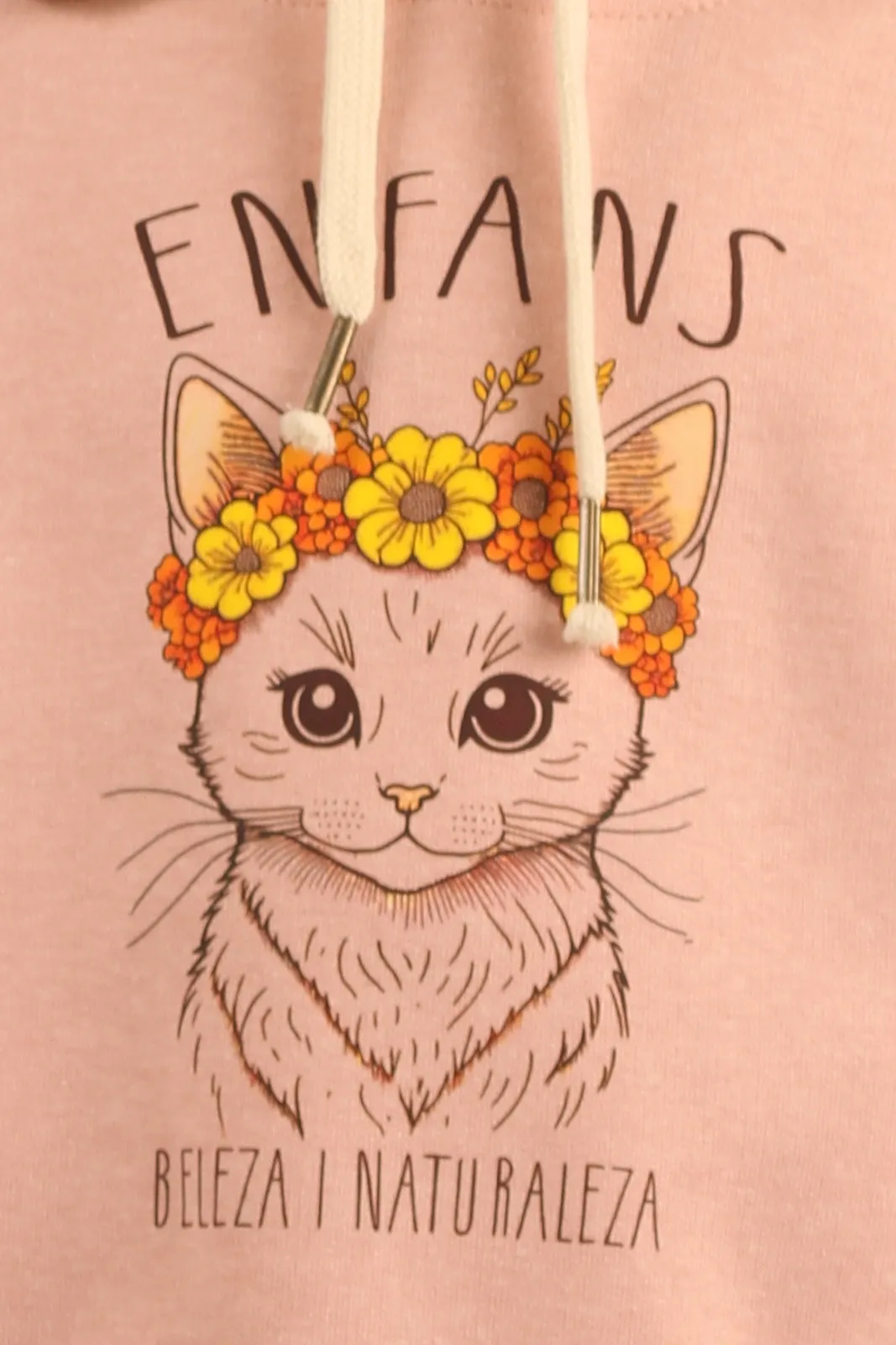 El buzo Cleo está confeccionado en frisa suave, con cuello redondo y capucha forrada en algodón para mayor confort. Sus cordones ajustables y los puños y cintura de ribb a tono aseguran un ajuste cómodo, mientras que la estampa central exclusiva le da un toque único.