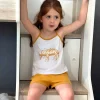 Pijama fresco y moderno: musculosa de algodón 100% con tiras de ribb, entubado a contra tono. Complementado con short 100% algodón en color coordinado con el ribb.