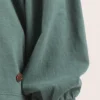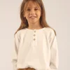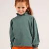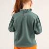 Esta remera mangas largas de algodón 100%, tiene un diseño súper original: Con voladitos en mangas y cuello. Los hombros fruncidos estilo princesa le dan un aire distinto. Además, en la espalda tiene una cartera con botones de nácar a tono tela.