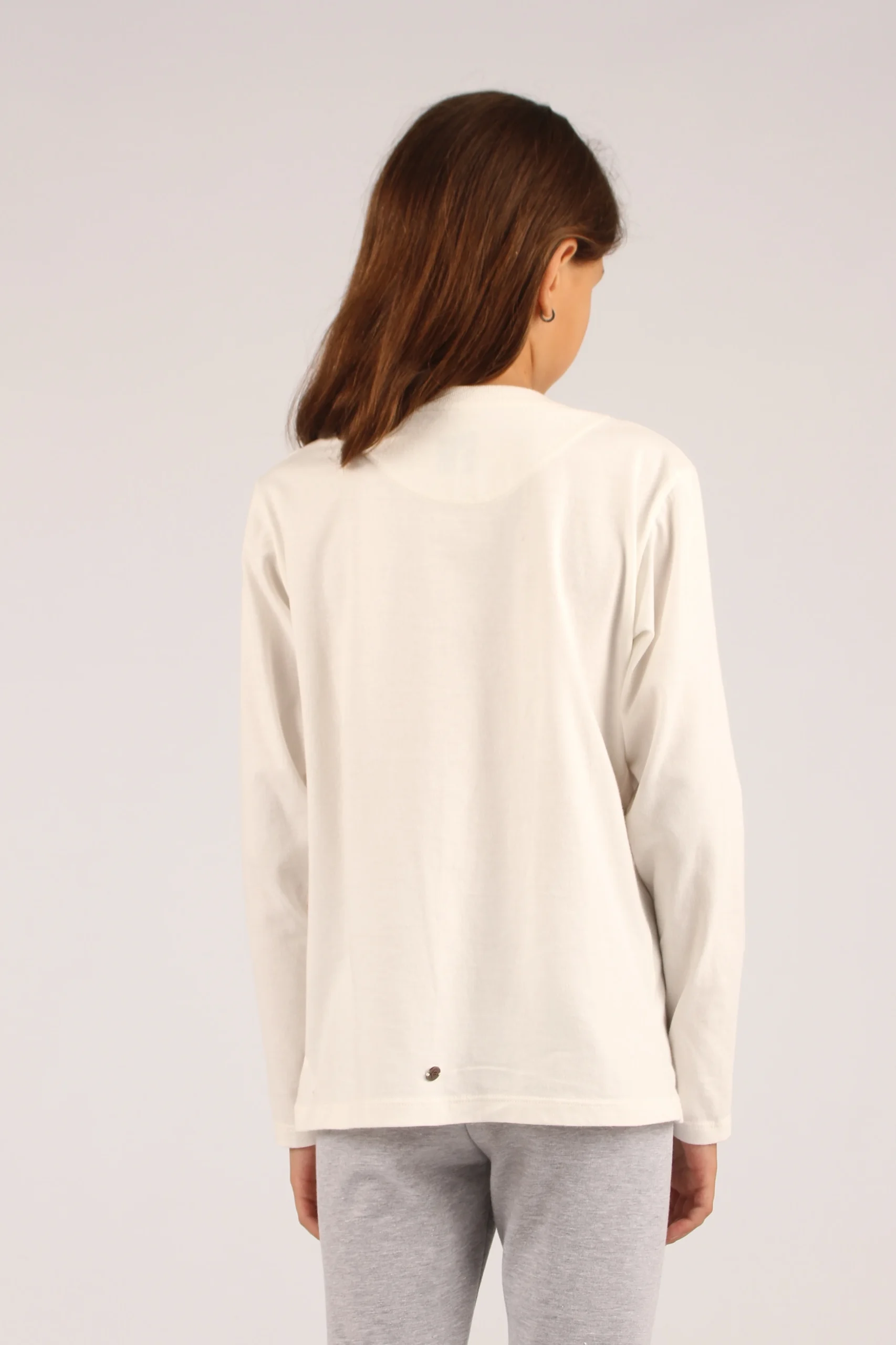 Esta remera es de algodón 100% . Con mangas largas y cuello de ribb. Lo más exclusivo: una estampa full delantera que añade estilo único a la prenda. ¡Ideal para cualquier ocasión y garantizando comodidad todo el día!