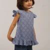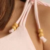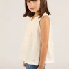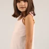 Esta es una musculosa hecha de 100% algodón, lo que la hace suave y cómoda. Tiene breteles regulables con un detalle en pequeñas cuentas de madera, que le dan un toque rústico y encantador. El ruedo simula ser doble, lo que agrega estilo al diseño.