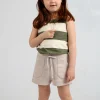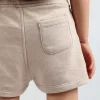 Este short de rústico de algodón es una prenda cómoda y versátil. Su cintura es elástica para un ajuste cómodo. En la parte delantera, tiene bolsillos aplicados con detalles en morley y una chapa con la marca Enfans. En la parte trasera, cuenta con un bolsillo tradicional. Además, presenta un detalle de cordón en la parte central, lo que agrega un toque de estilo a la prenda.