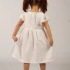 Este vestido de broderie es una prenda encantadora. Tiene un aspecto súper delicado. Las mangas tienen volados, lo que agrega un toque de dulzura y movimiento. El interior del vestido está forrado con voile, lo que lo hace cómodo y evita que sea transparente. La pechera del vestido tiene detalles vivos que resaltan y realzan su apariencia. Además, tiene una cartera en la parte trasera que se cierra con botones de nácar, lo que le da un toque sofisticado y práctico al mismo tiempo. Es una prenda ideal para ocasiones especiales y eventos más formales.