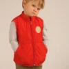 Chaleco de tela sire coating, forrado en el interior con piel a contratono para mayor calidez. Cuenta con cierre con tapacierre y bolsillos diagonales también forrados. La cintura con ribb a tono y el logo Enfans en el frente le dan un toque distintivo y funcional, ideal para completar cualquier look de invierno.