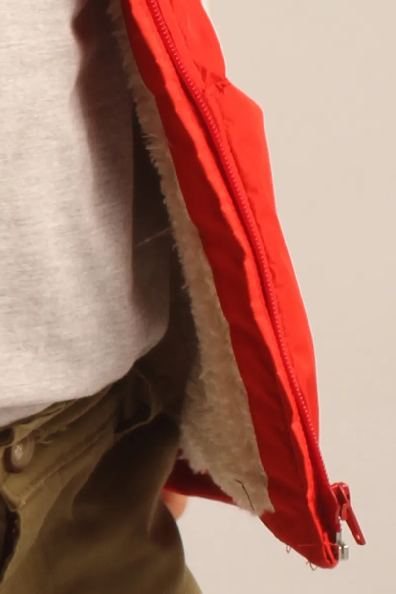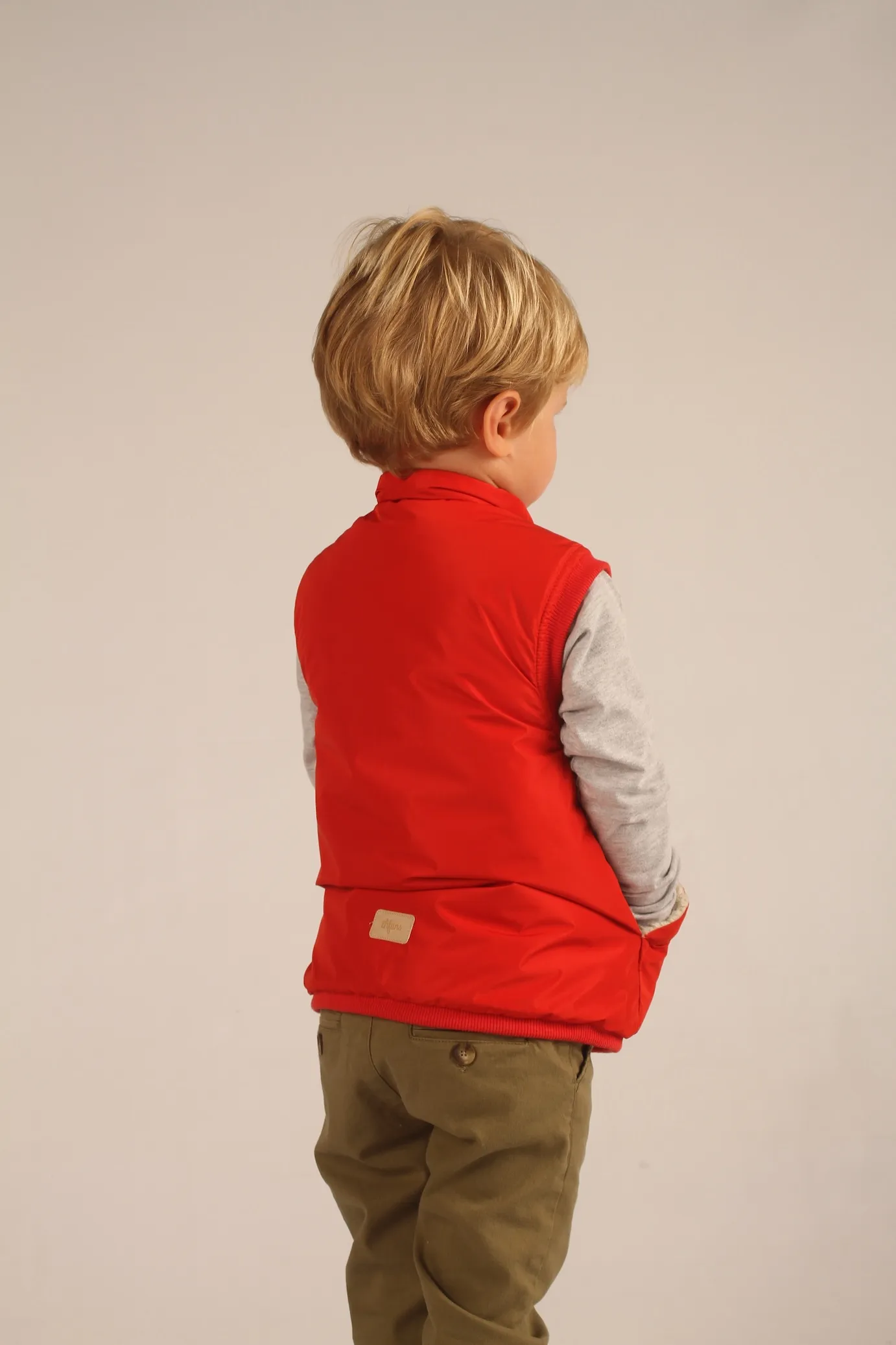 Chaleco de tela sire coating, forrado en el interior con piel a contratono para mayor calidez. Cuenta con cierre con tapacierre y bolsillos diagonales también forrados. La cintura con ribb a tono y el logo Enfans en el frente le dan un toque distintivo y funcional, ideal para completar cualquier look de invierno.
