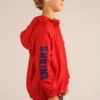 Este piloto con capucha para niños es perfecto para días lluviosos y ventosos. Confeccionado con tela ipermeable y resistente al viento, garantiza protección sin igual. Forrado en jersey de algodón con estampa interna personalizable. Es cómodo y funcional. Manga estampada con nuestra marca exclusiva. Puños y cintura elastizados para un ajuste perfecto. Liviano, práctico y con capucha ajustable.