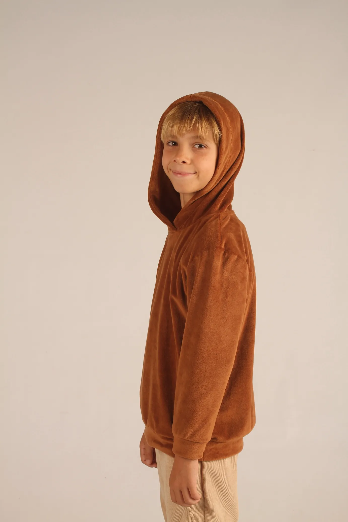 Buzo básico de tela plush bifaz con capucha, ideal para brindar suavidad y comodidad en todo momento. Perfecto para cualquier ocasión, combina calidez y versatilidad.