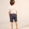 La bermuda Charly, en tela de gabardina liviana elastizada, combina estilo y funcionalidad. Tiene bolsillos diagonales delanteros y bolsillos ojal traseros, además de una cintura regulable con elástico ojal que se puede ajustar para mayor comodidad. La cartera con cierre y botón, junto con los pasacintos, completan este diseño versátil y práctico.