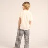 El pantalón Miguel, hecho de lino 100%, es una opción cómoda y fresca para el verano. Su diseño a cuadros, con un cordón ajustable y terminal de metal, asegura un ajuste perfecto. La cintura elastizada y los bolsillos delanteros diagonales brindan practicidad, mientras que el bolsillo trasero plaqué con chapita Enfans añade un detalle distintivo al diseño.