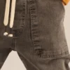Pantalón de denim elastizado con bolsillos delanteros tipo parche y apertura diagonal, aportando un diseño práctico y cómodo. La cintura elastizada con cordón ajustable y terminales de metal asegura un ajuste perfecto. Además, cuenta con un bolsillo plaqué trasero que completa el estilo funcional de la prenda.