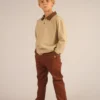 Pantalón chino de gabardina elastizada, clásico y funcional. Con bolsillos diagonales delanteros y traseros de ojal, ofrece practicidad en cada movimiento. La cintura con elástico regulable asegura un ajuste cómodo y perfecto para todo el día.