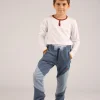 Esta camisa de jean elastizado combina estilo y comodidad. Con cuello italiano y puños rectos con botones de metal. Cuenta con dos bolsillos plaqué con solapa y botón. Además, incluye una etiqueta identificatoria personalizable en el interior.