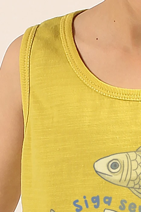 La musculosa Iván, hecha de tela flamme, es ideal para los días cálidos. Las sisas y el cuello entubados en ribb a tono con la tela brindan un ajuste cómodo, manteniendo el estilo fresco y ligero.