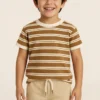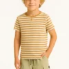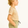 La Remera Pampa está confeccionada en jersey de algodón, un tejido suave y respirable que ofrece confort en todo momento. Su diseño rayado incluye cartera corta con botón en el frente, que suma un detalle distintivo y práctico.