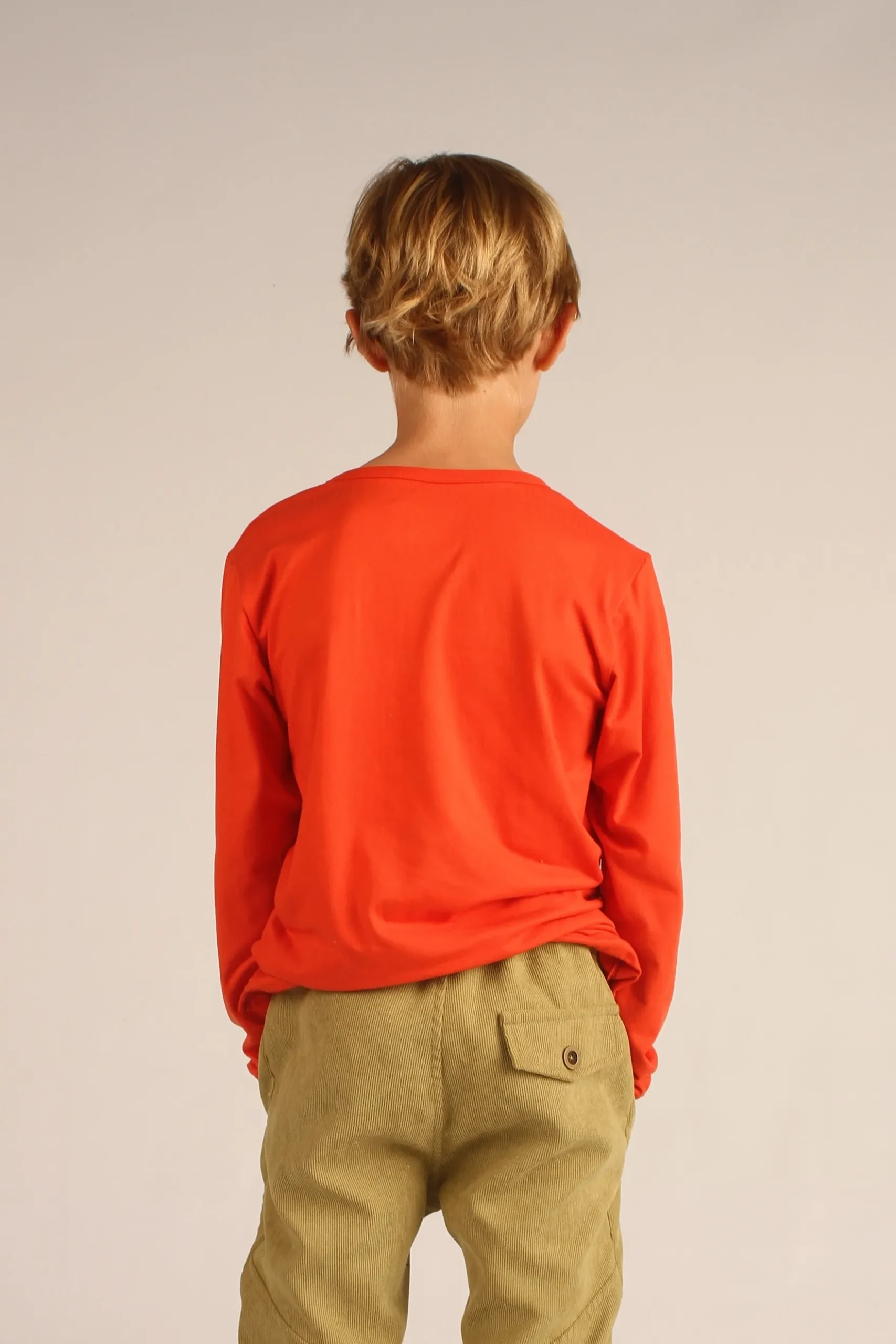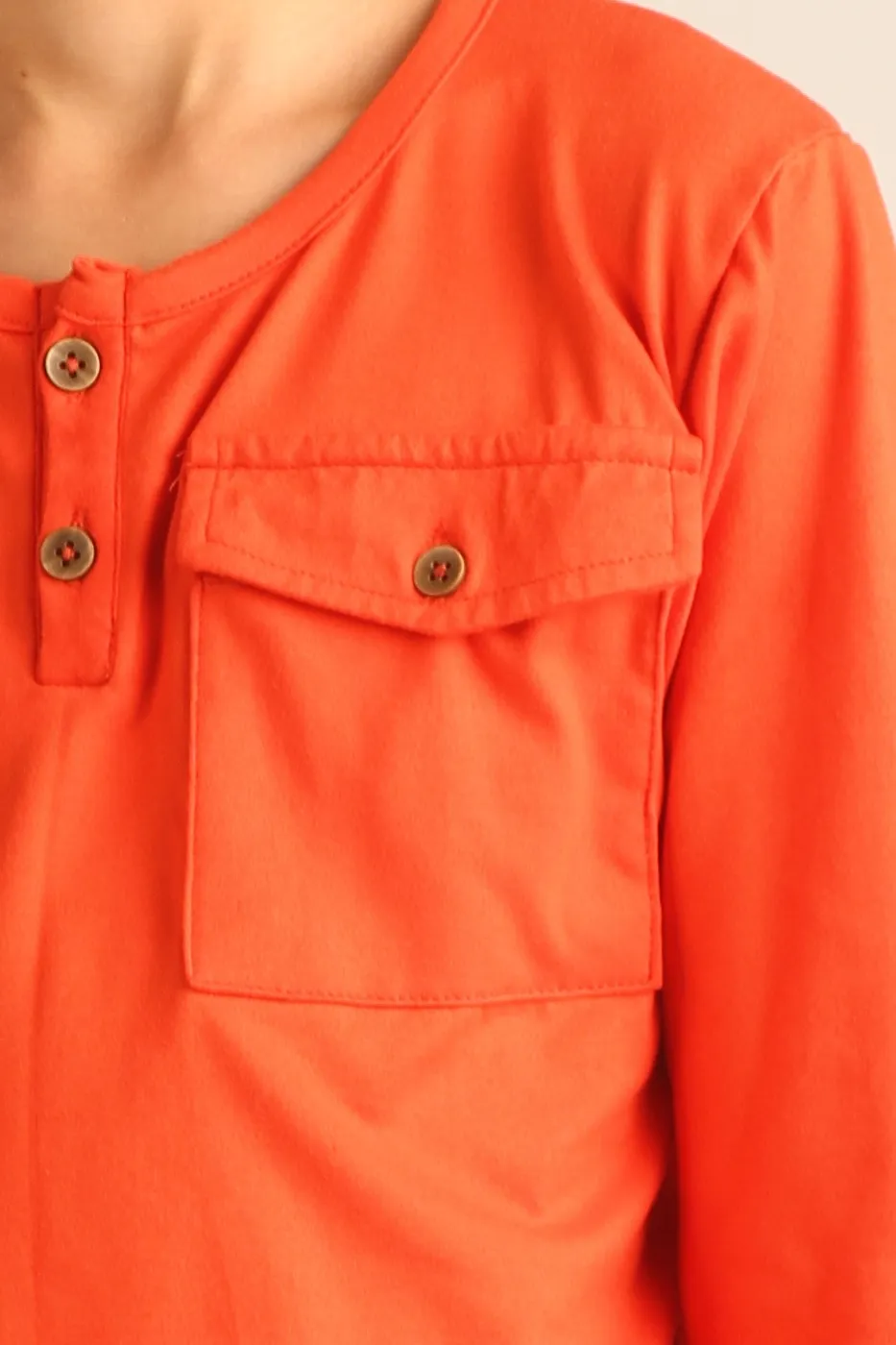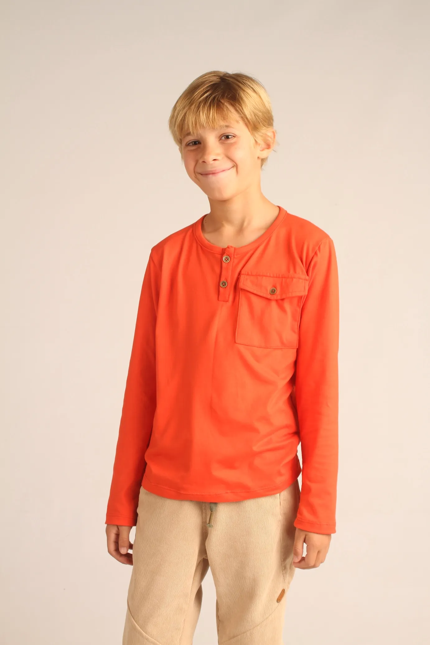 Esta remera de mangas largas con cartera y botones es un básico con detalles únicos. Con tubo ancho y bolsillo plaqué delantero, aporta un toque de originalidad a su diseño. Confeccionada en suave modal gamuzado, combina comodidad y estilo